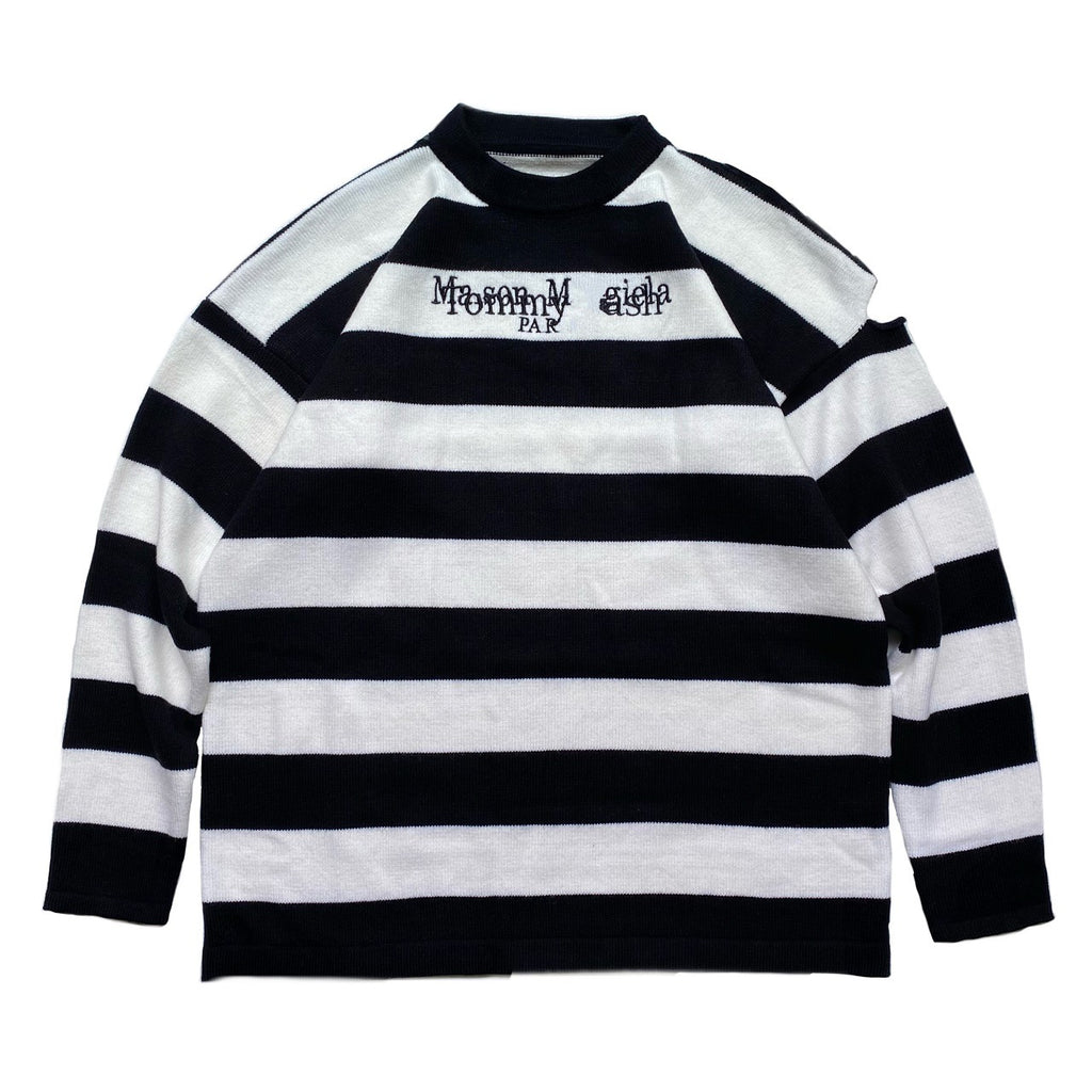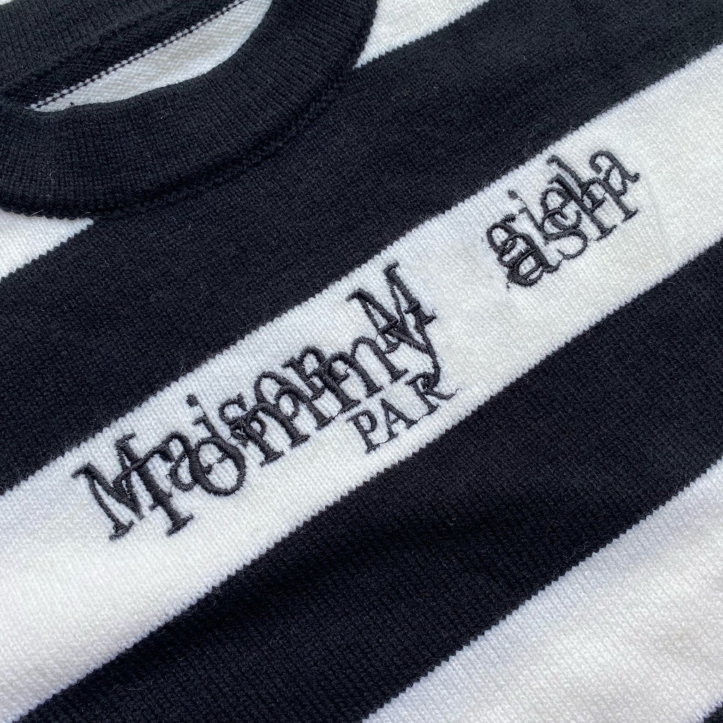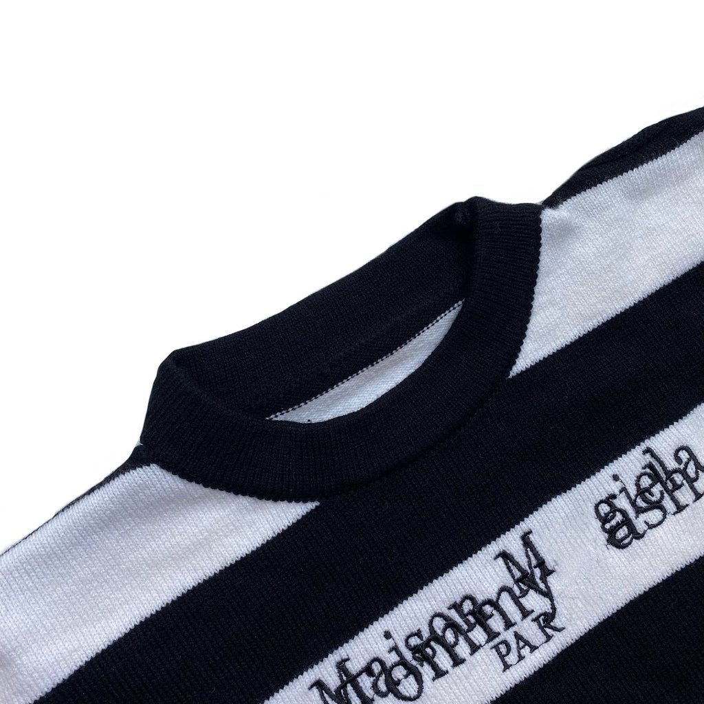 Kapital Sweater Vintage Black and White Stripe Trendy Idle Style Embroidered Crew Neck Letter Loose Sweater