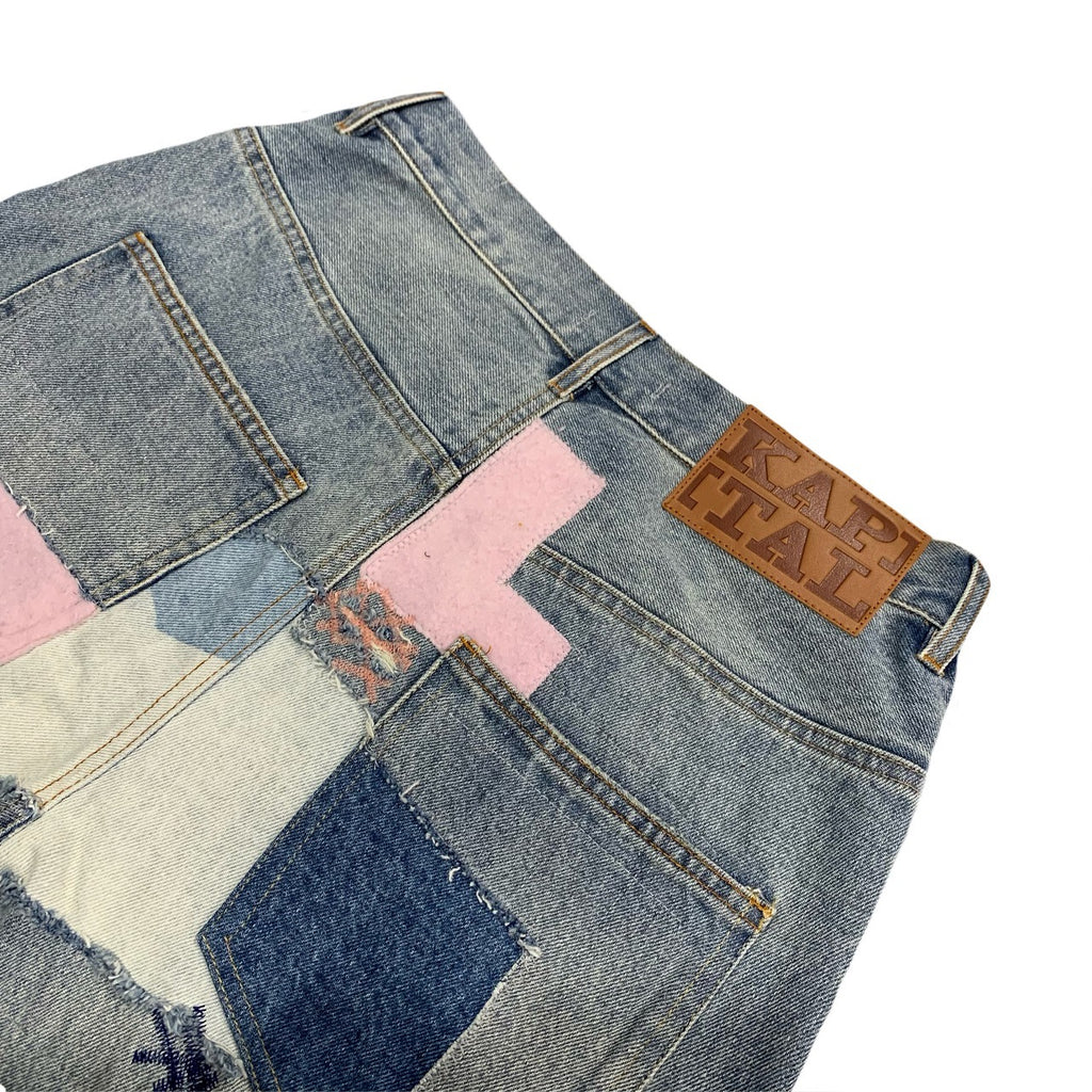 Kapital Jeans Pingtian Hehong Stitching Smiley Patch Ripped Embroidered Fashion Brand Denim Trousers