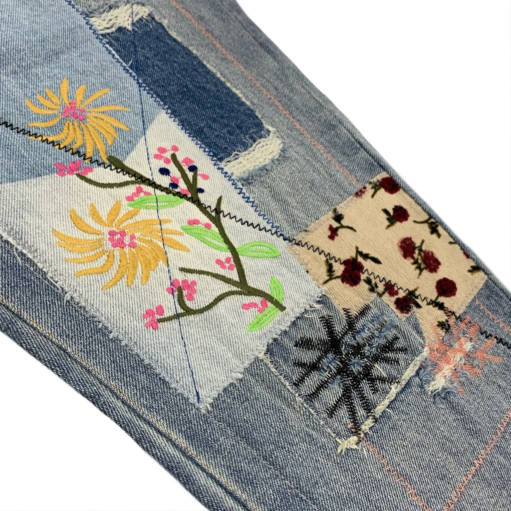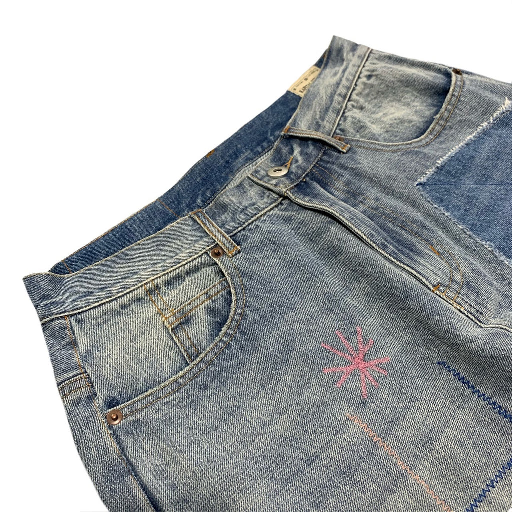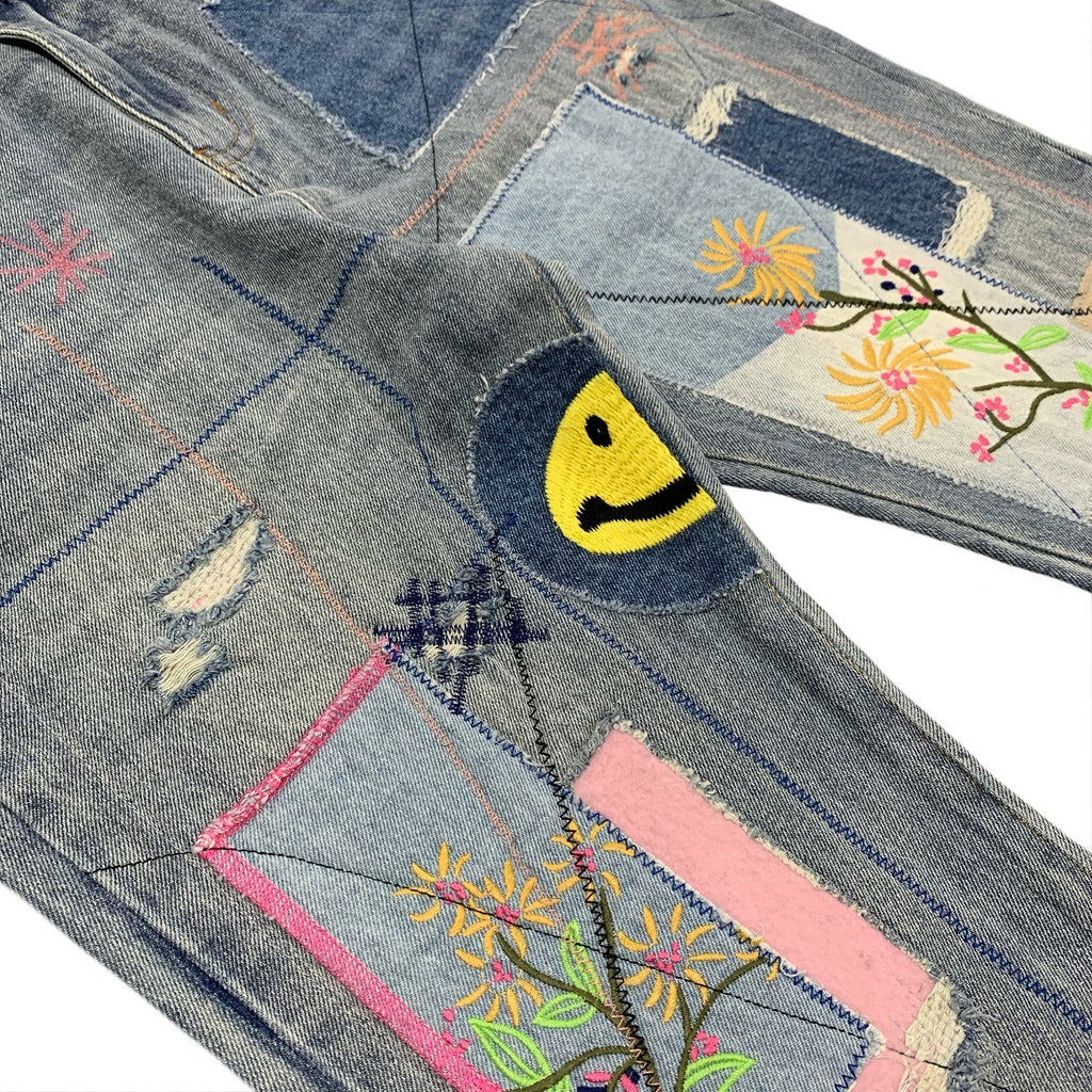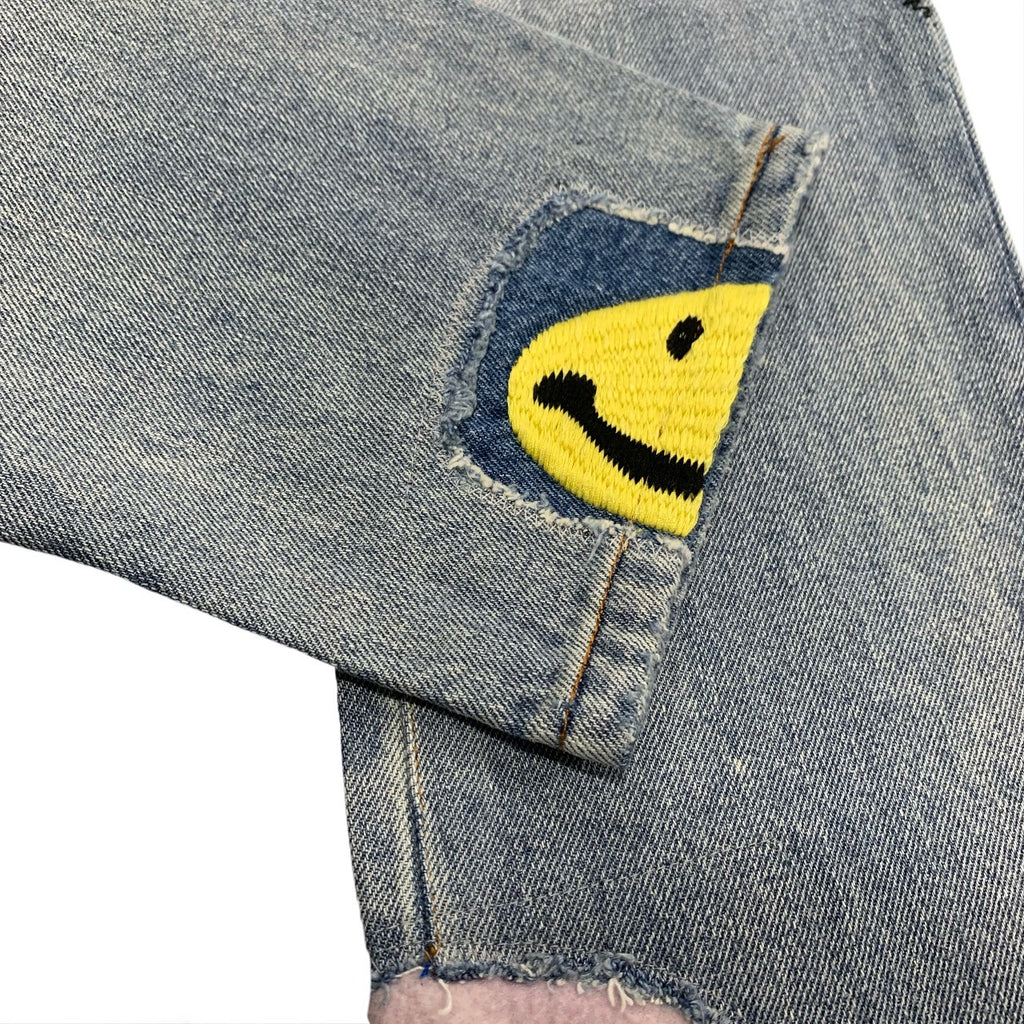 Kapital Jeans Hirata Kazuhiro smiley sticker ripped embroidery high street trendy brand denim trousers