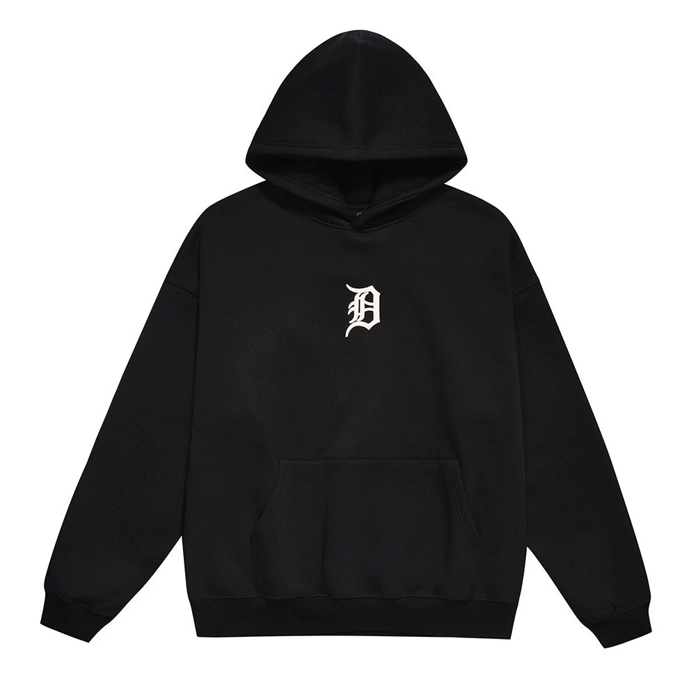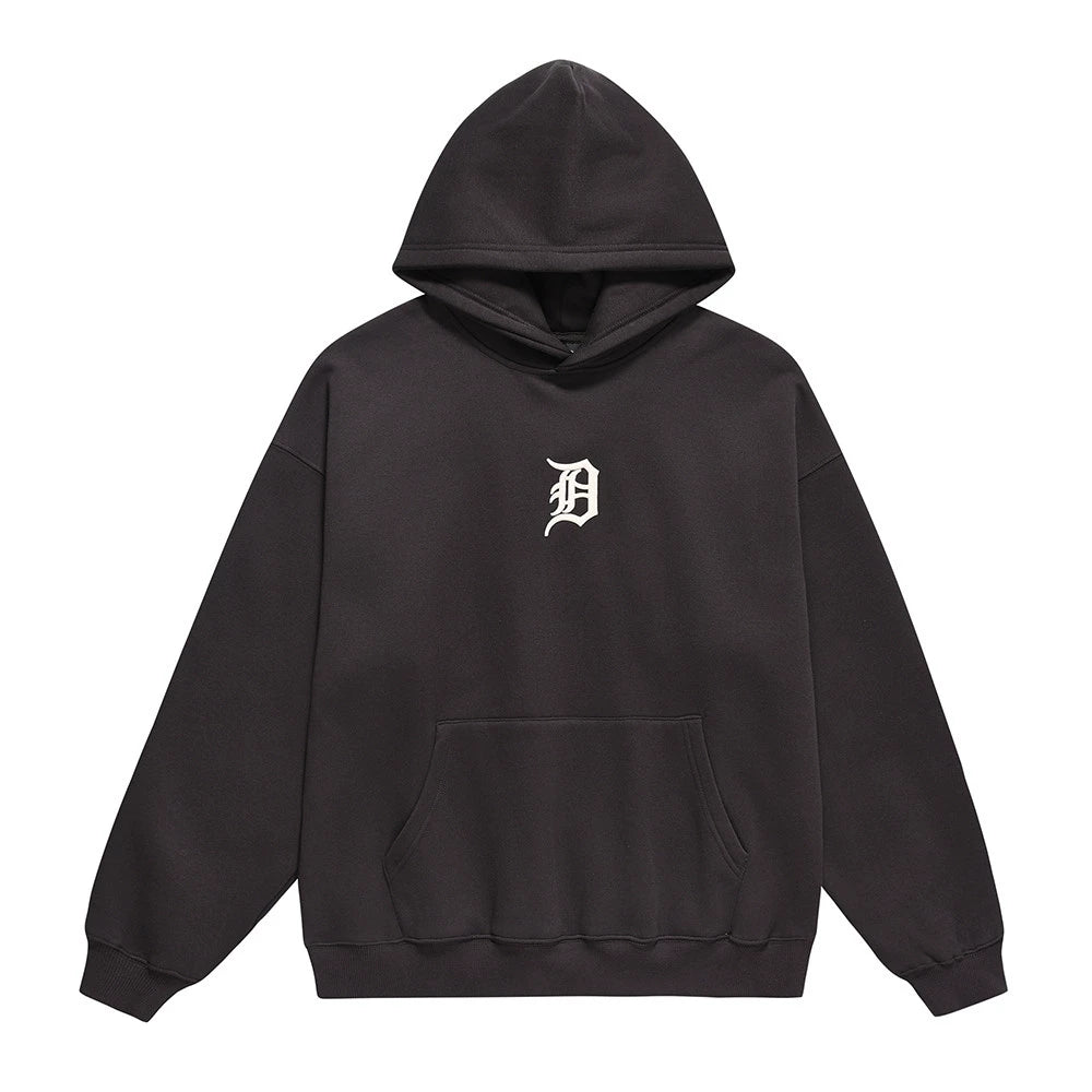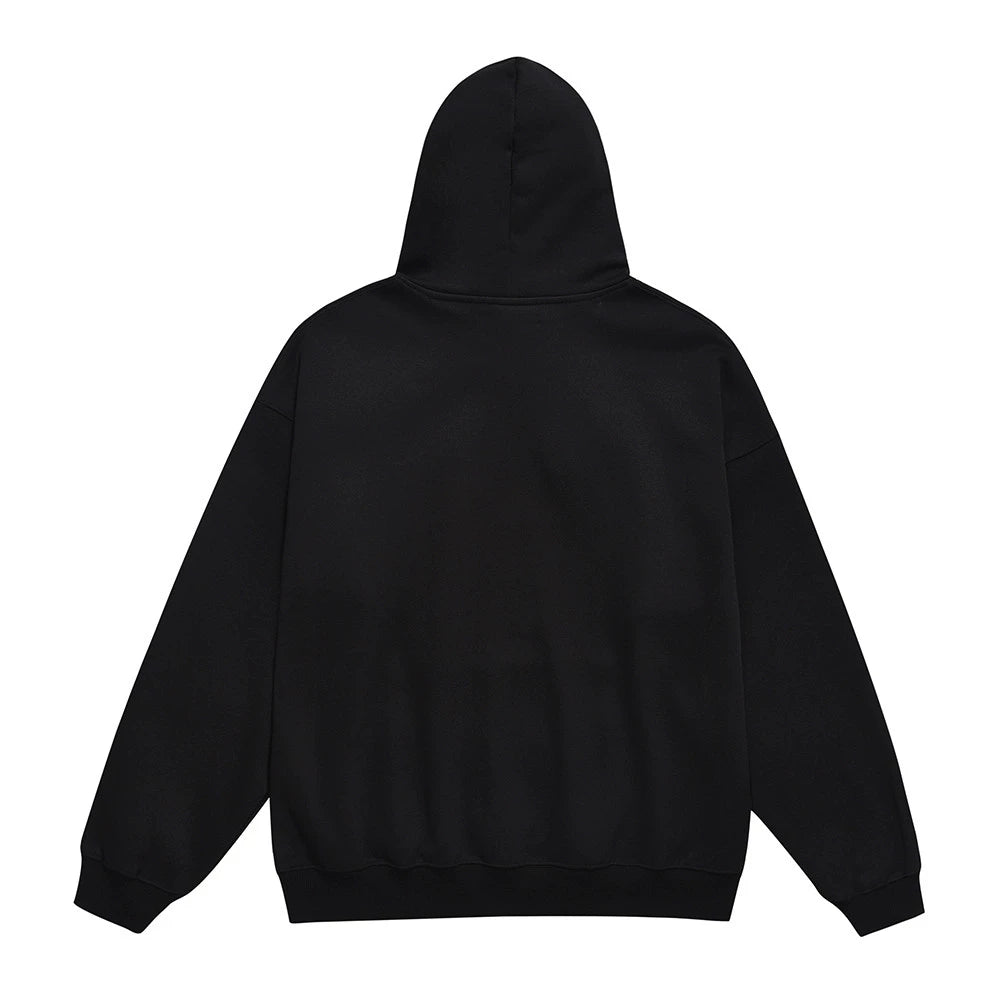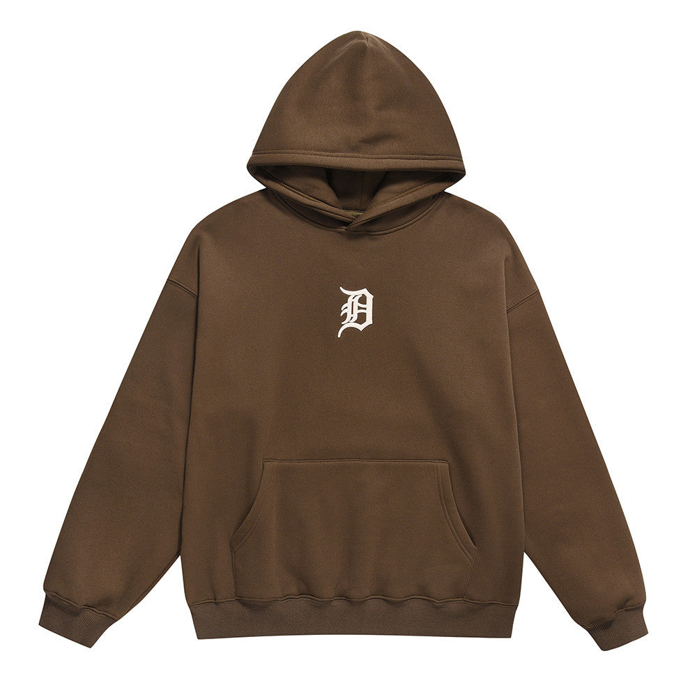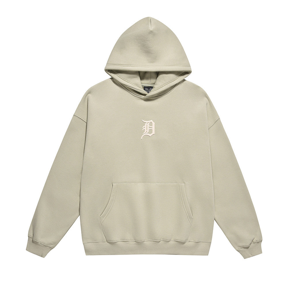 Men Fleece Lined Hoodie Autumn Winter Sweater Male Letter Embroidered Loose Hooded Pullover Long Sleeve Top