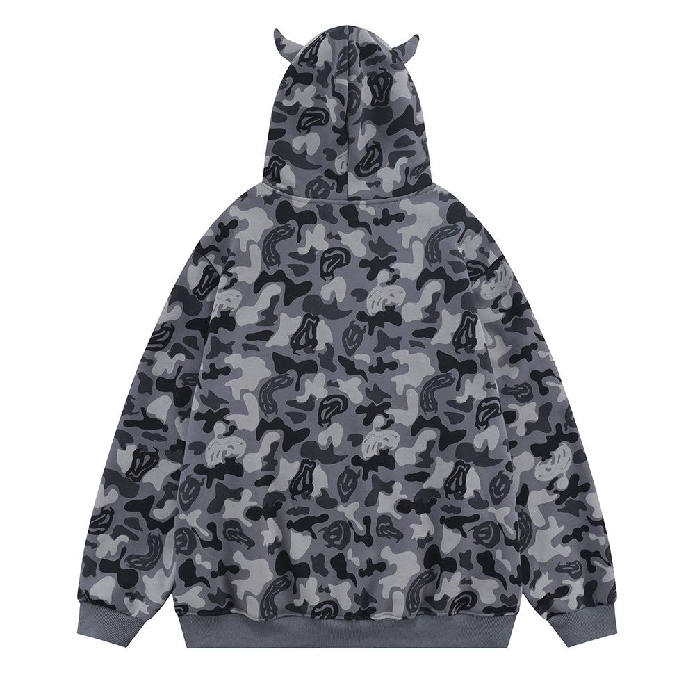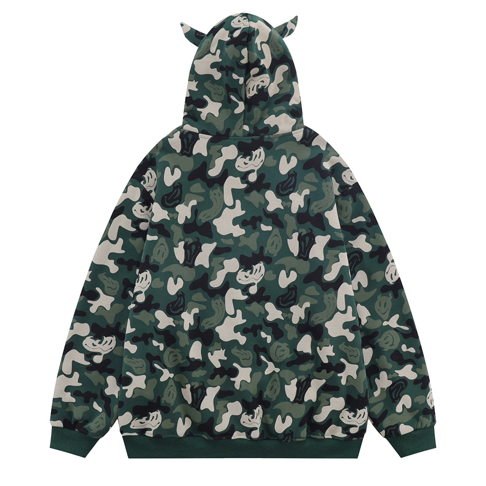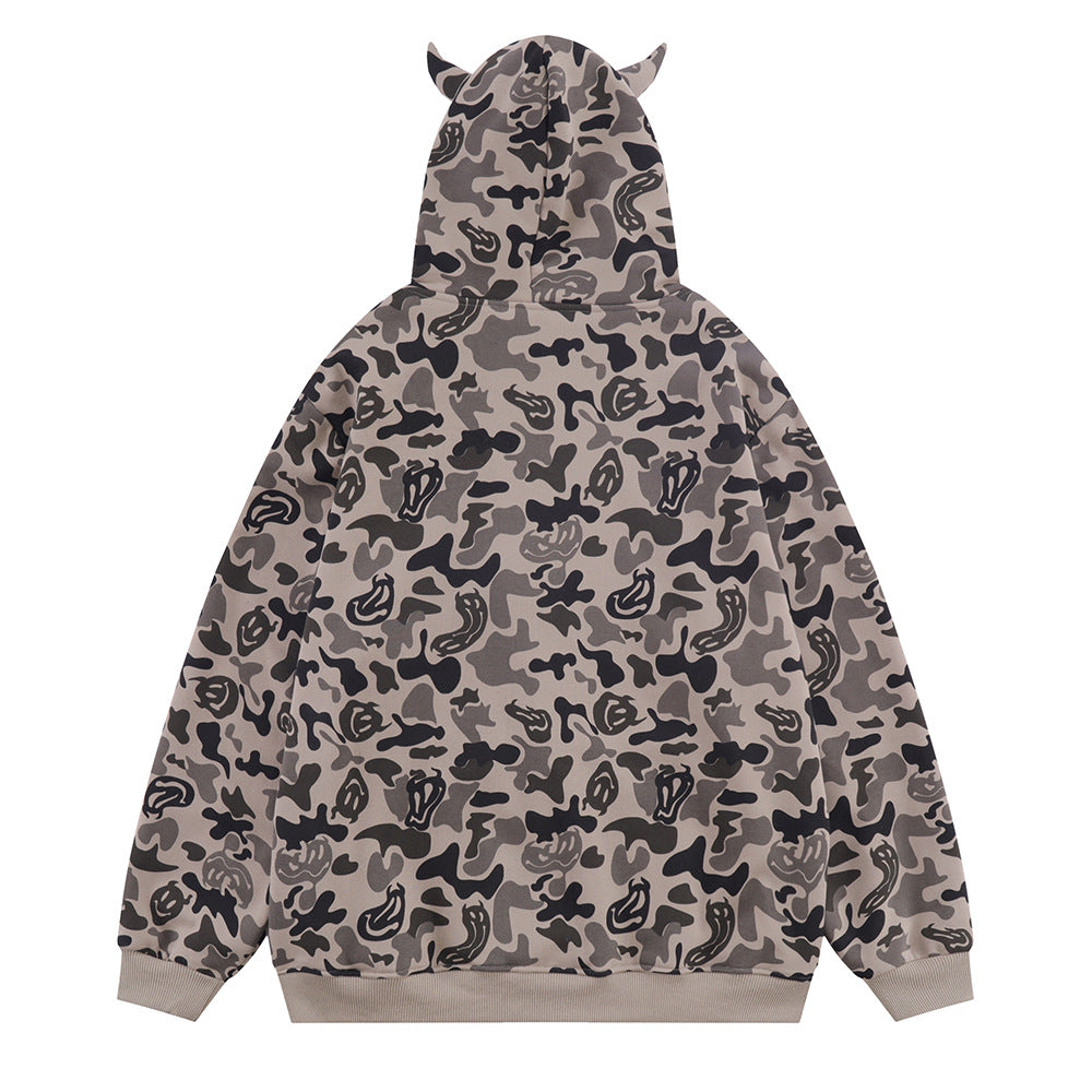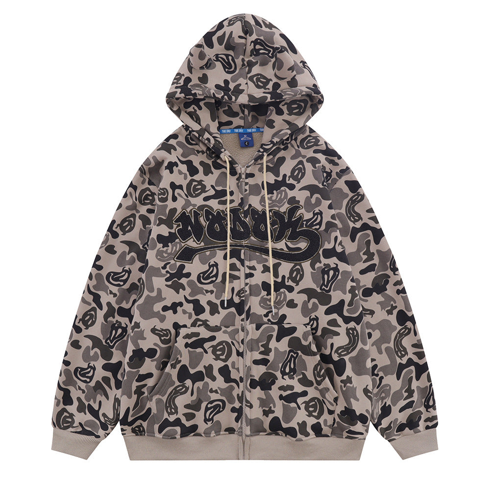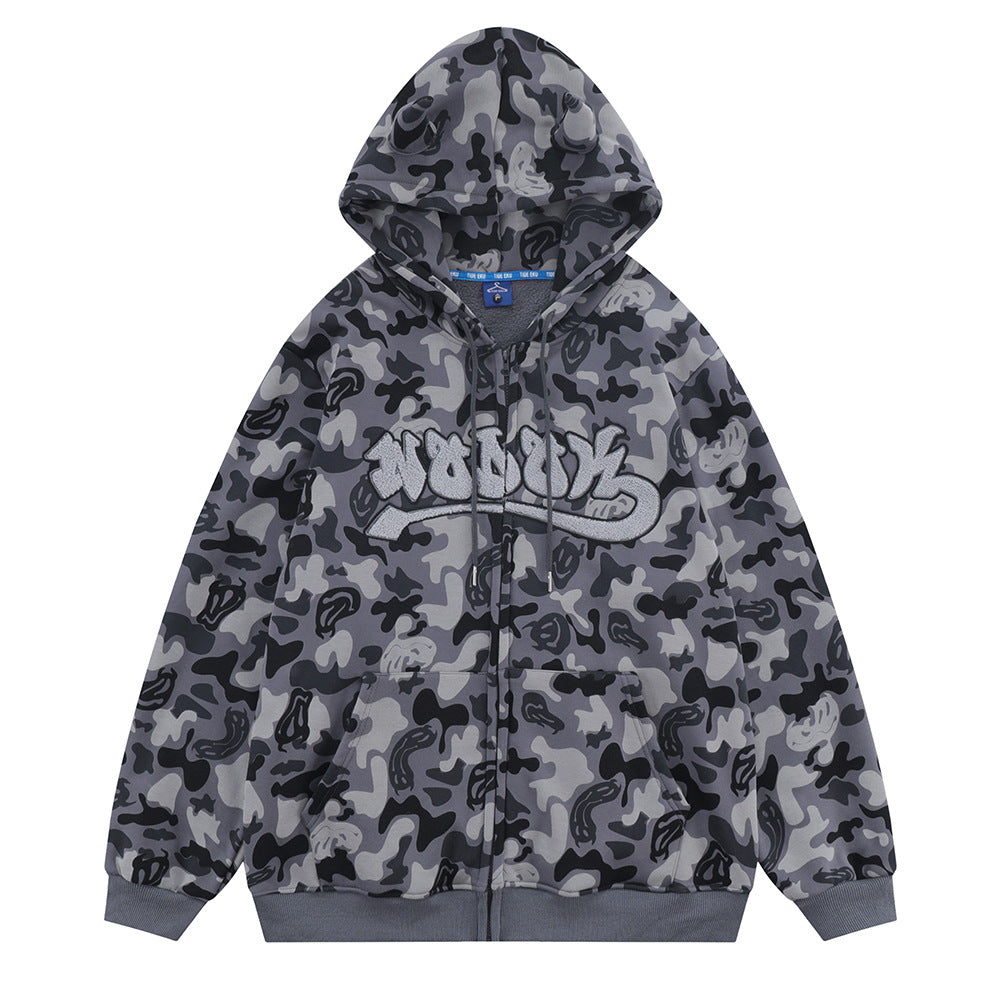 Men Fleece Lined Hoodie Camouflage Cardigan Sweater Men's Autumn and Winter High Street Zip Long Sleeve Coat