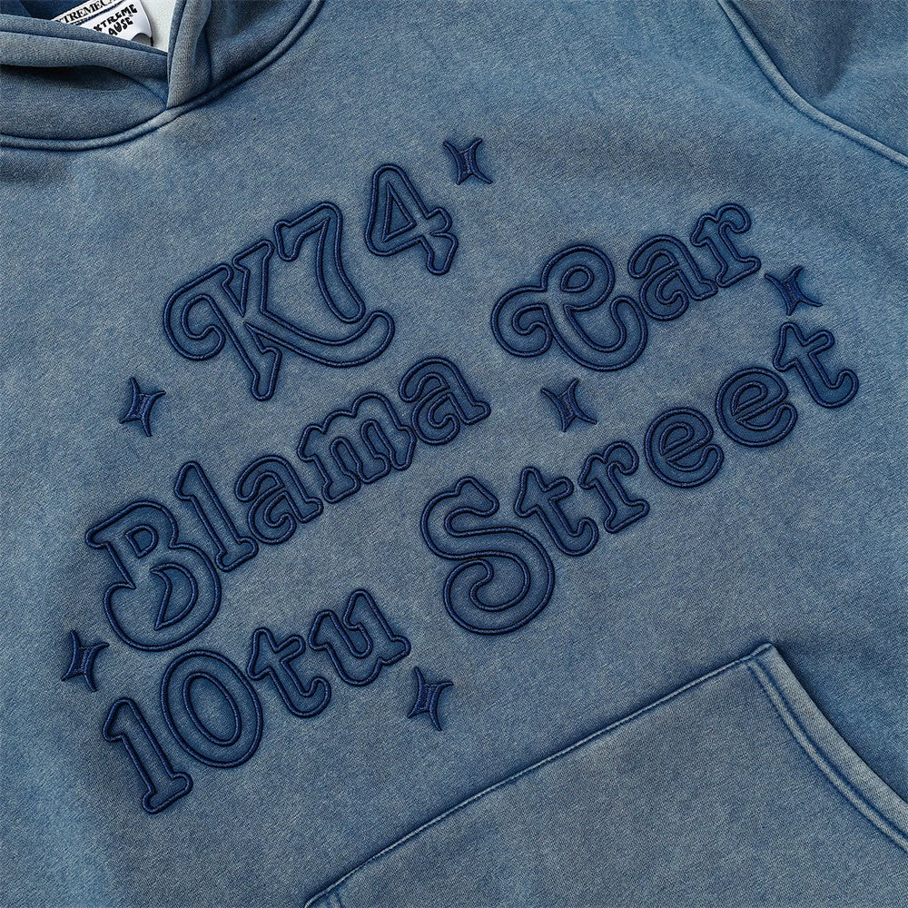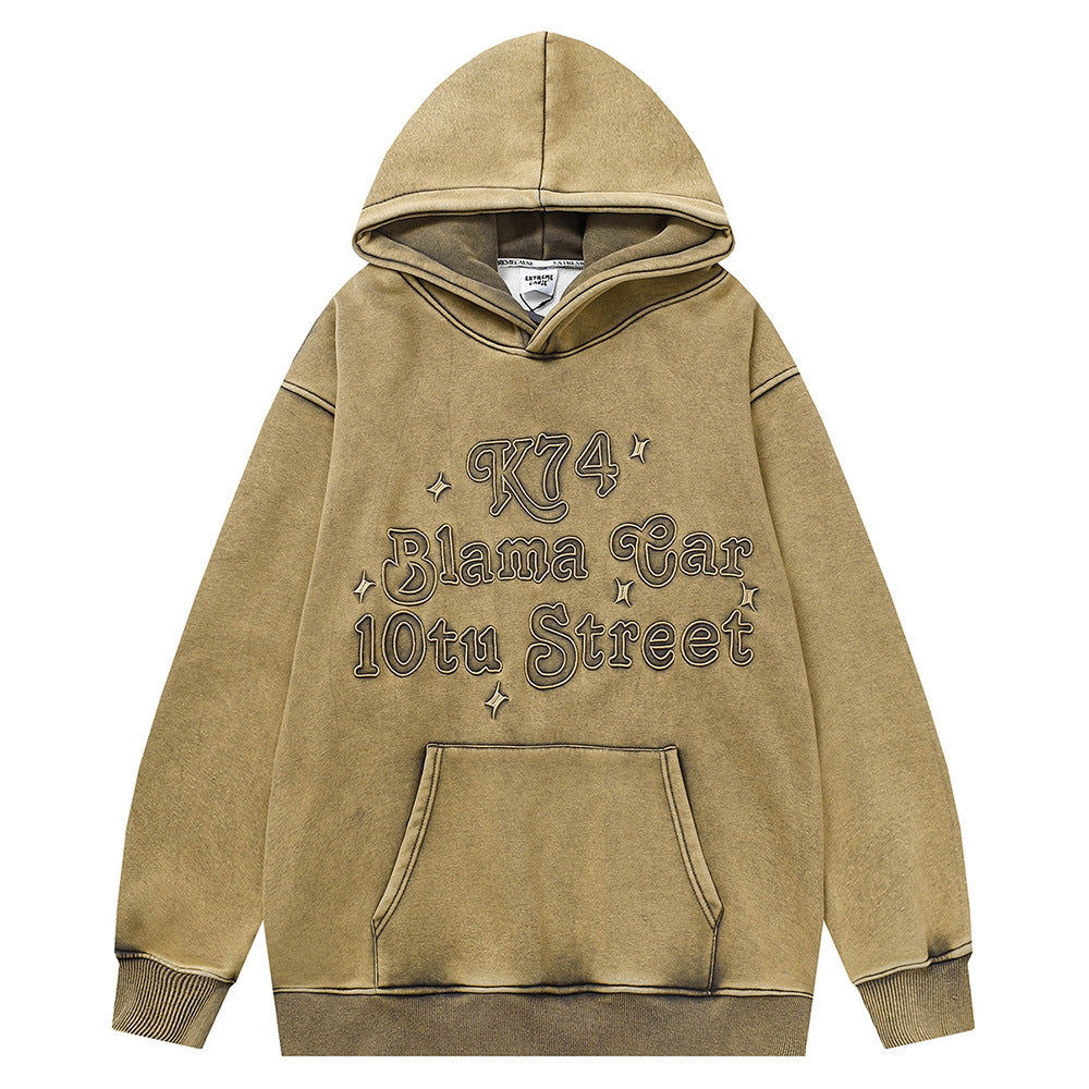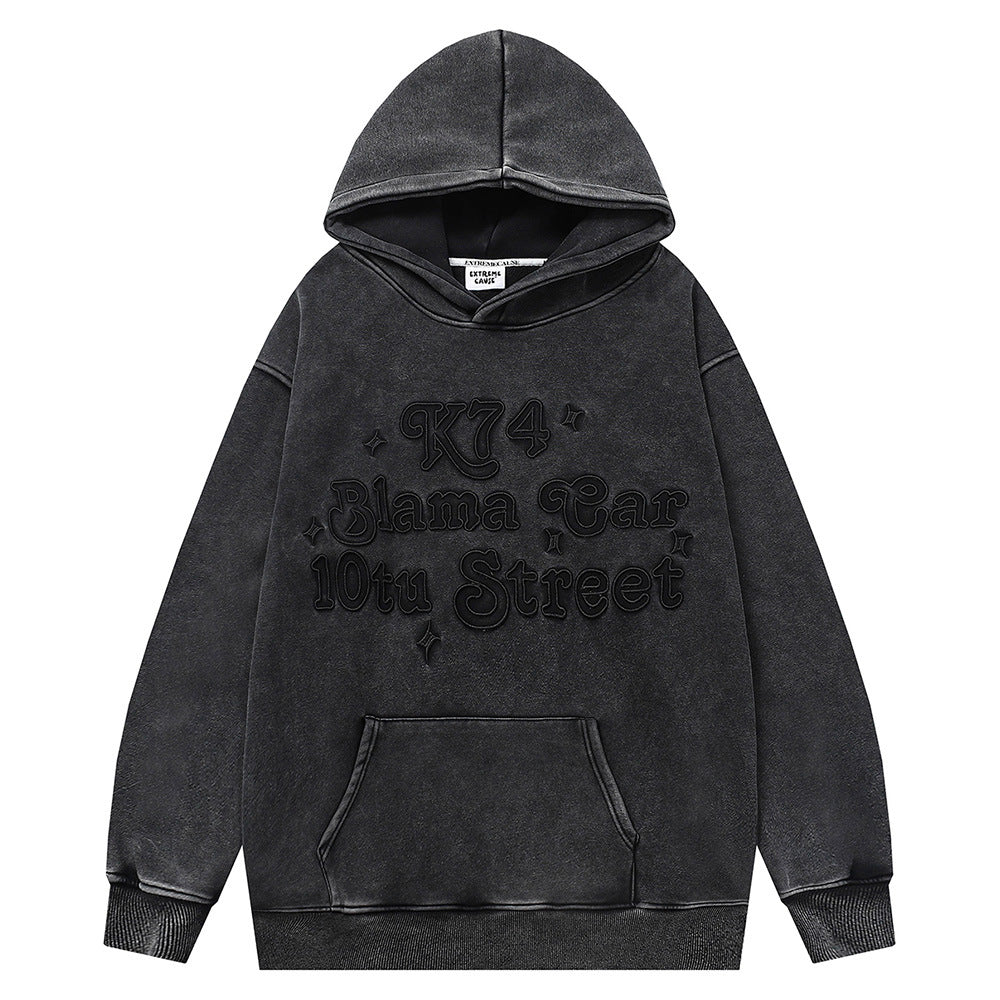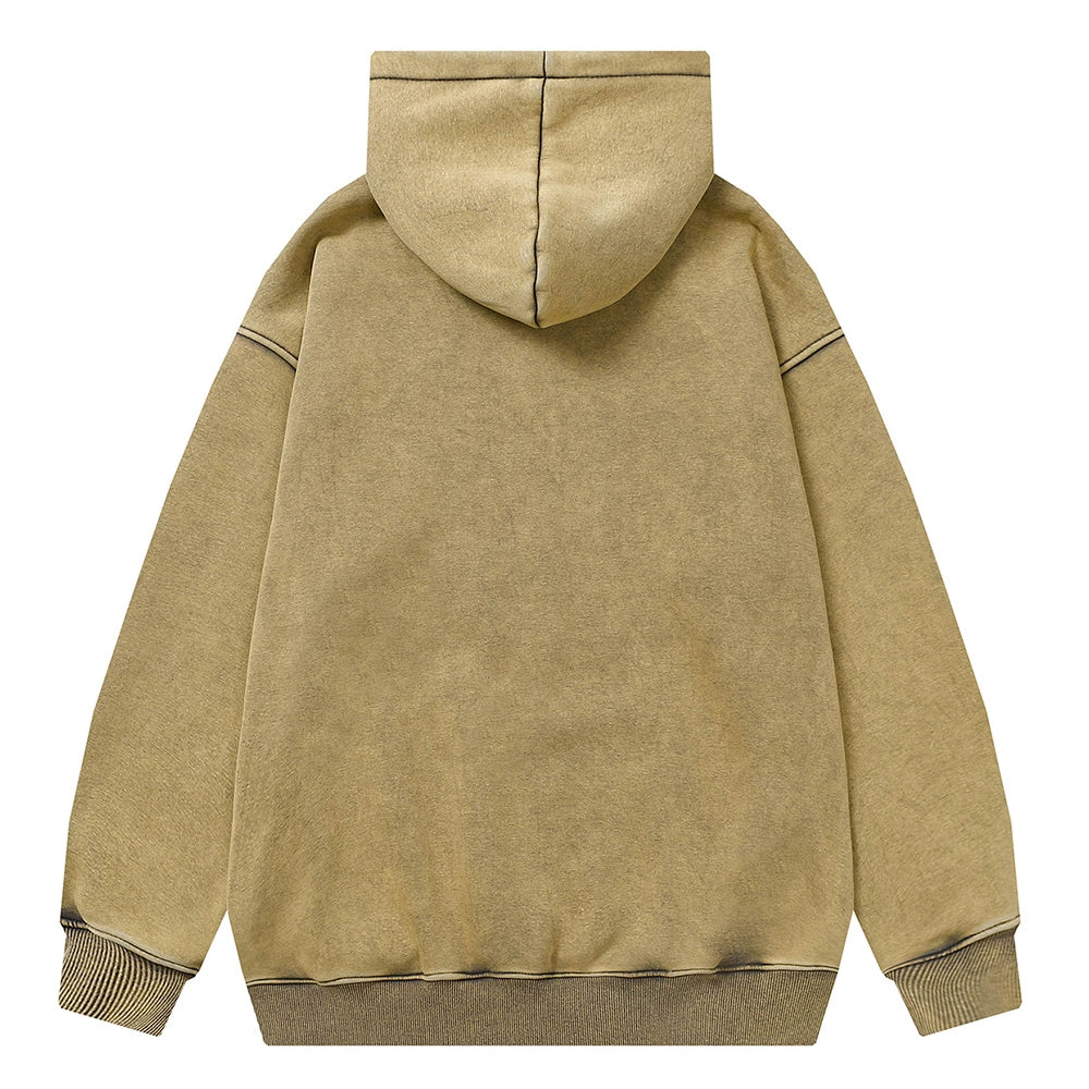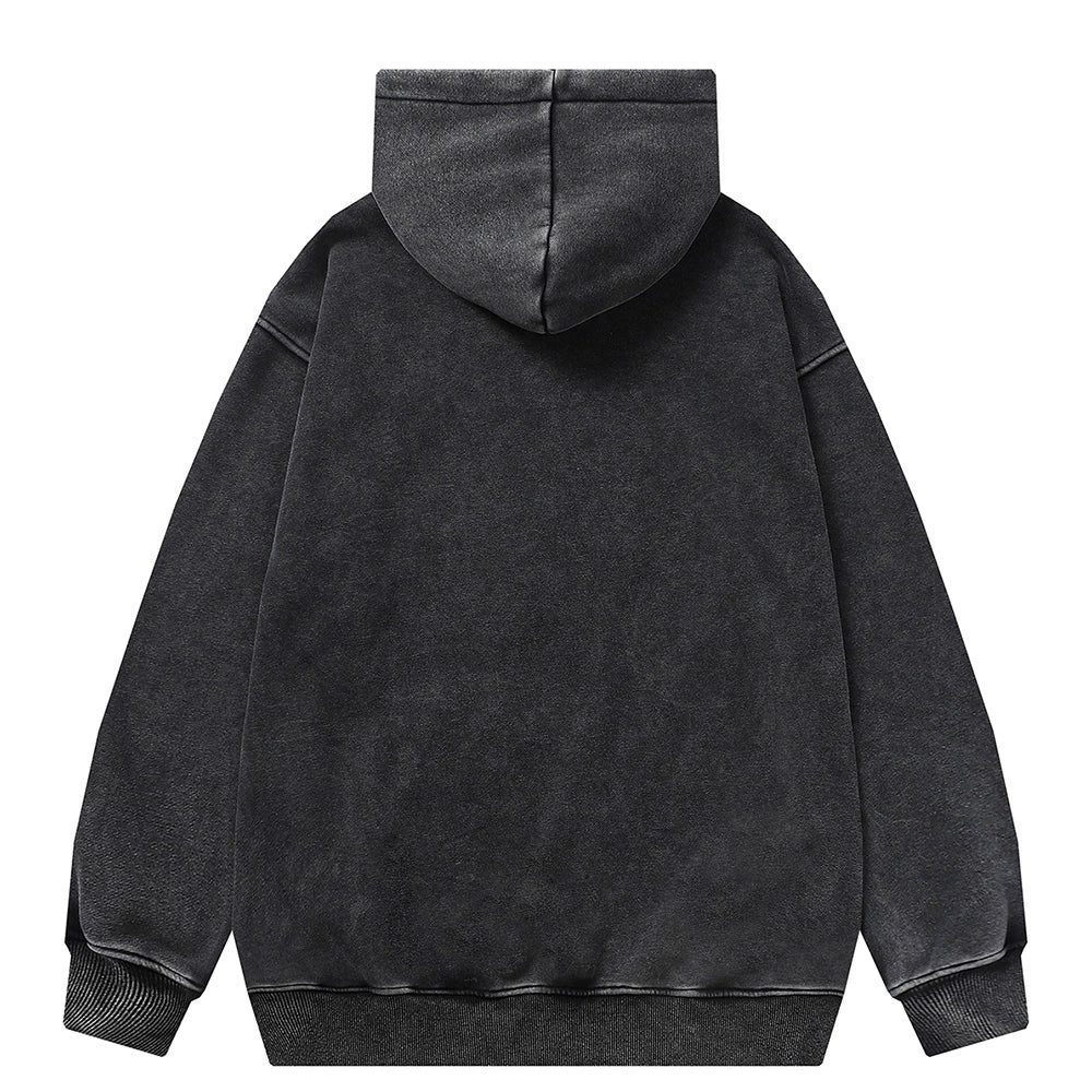Men Fleece Lined Hoodie Letter Embroidery Washed and Worn Hooded Sweater Men's Loose Street Pullover Hoodie