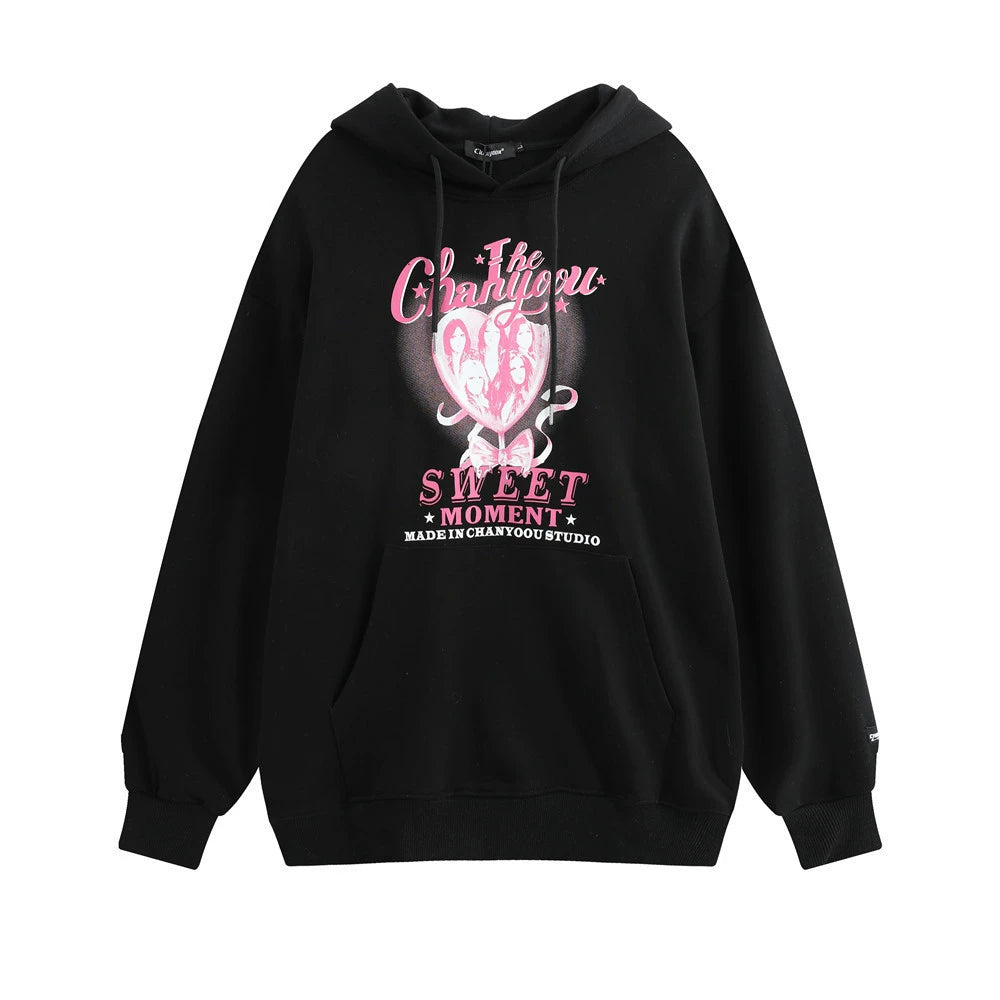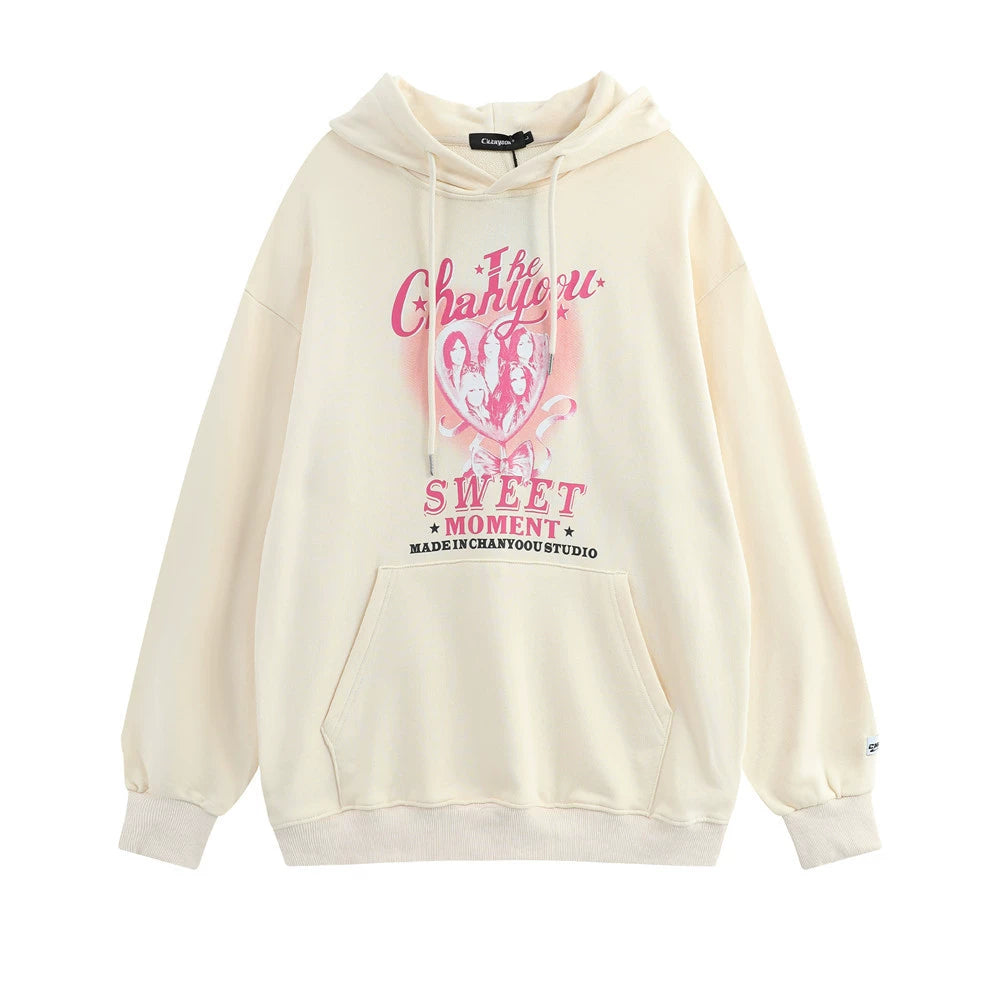 Men Fleece Lined Hoodie Printed Hoodie Autumn Men's Loose Street Long Sleeve Pullover