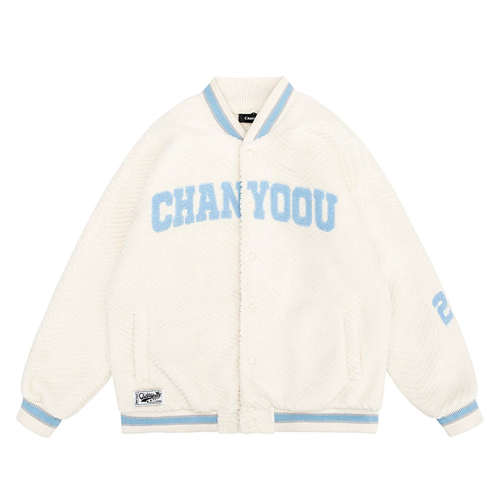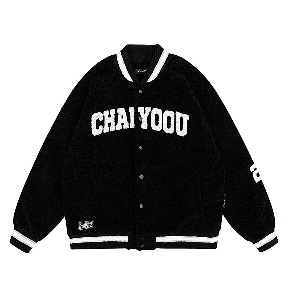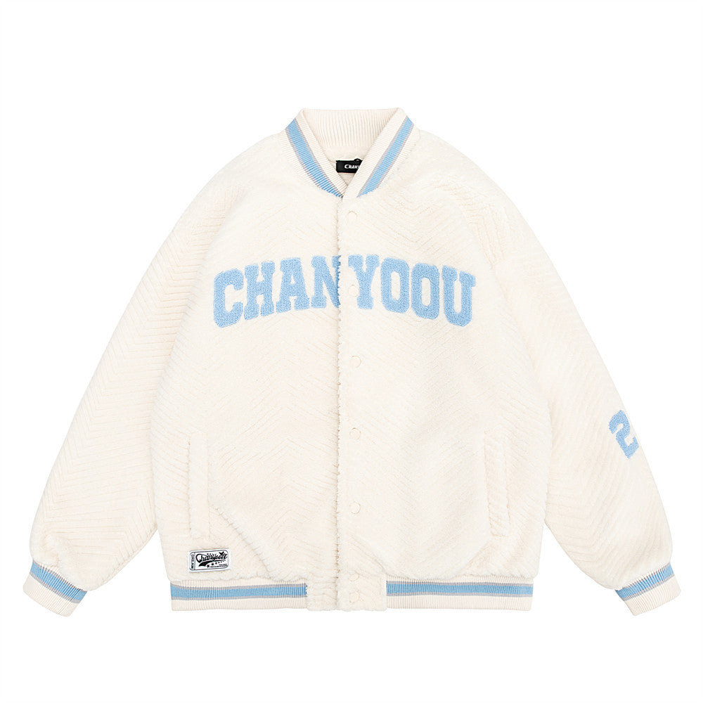 Men Cotton Padded Jacket Coat Winter Loose Letter Embroidery Cotton Casual Long-Sleeved Jacket Baseball Uniform
