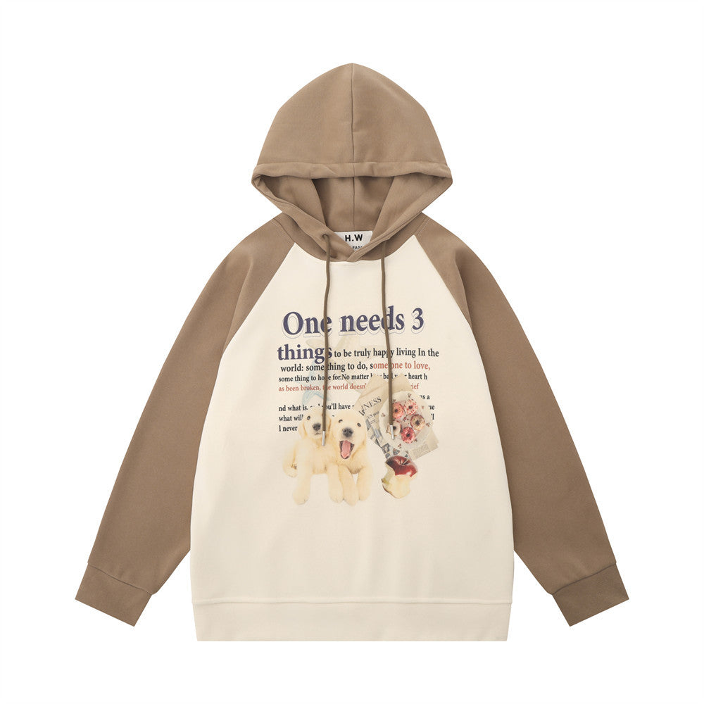Men Hoodie Animal Print Dog Hooded Sweater Color-Block Raglan Sleeves
