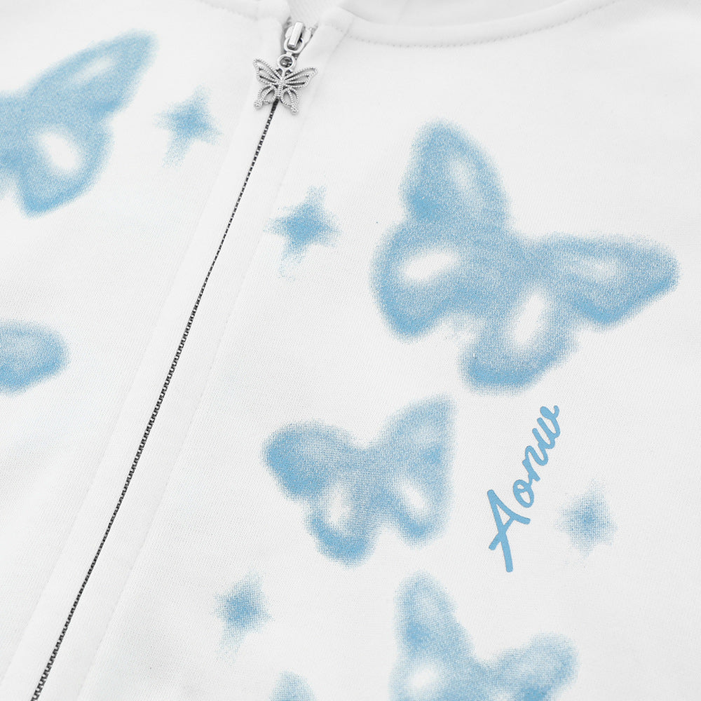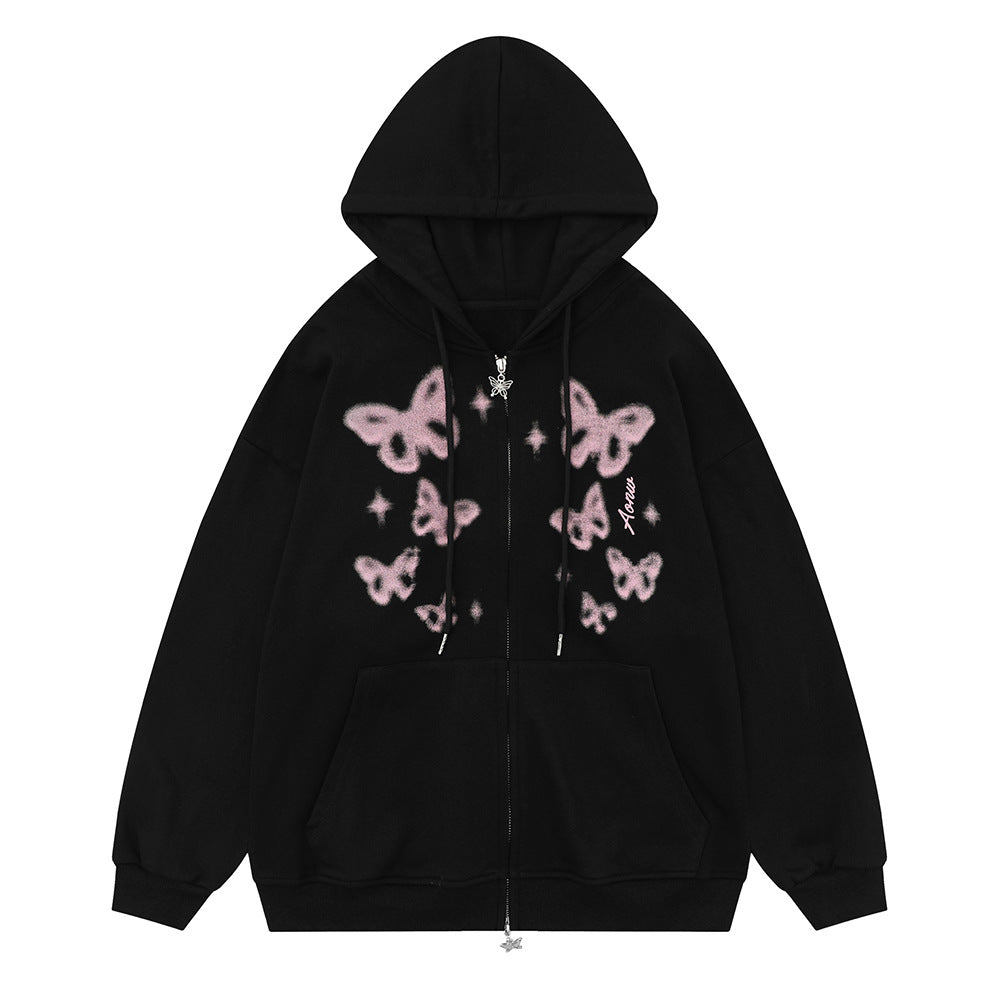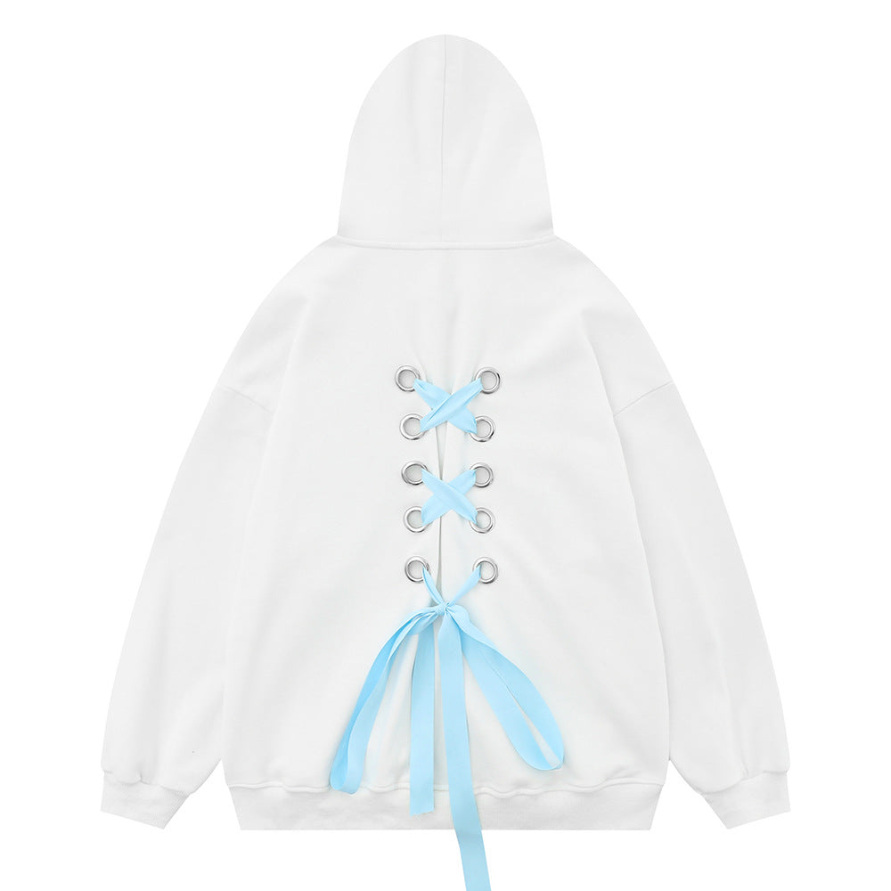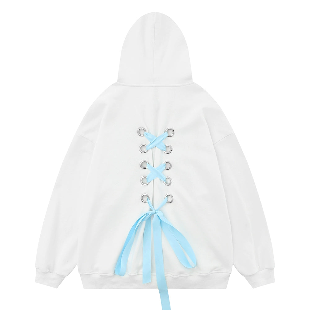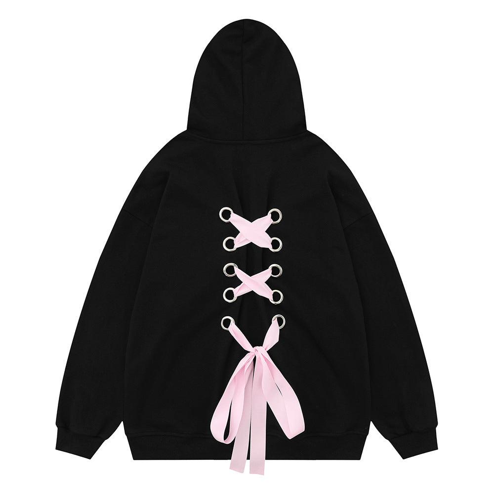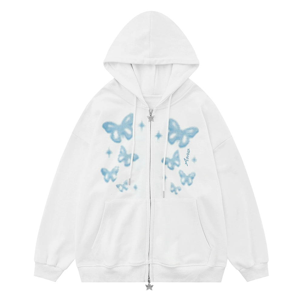 Men Hoodie Bow Bandage Hooded Coat Butterfly Print Cardigan Sweater Spring and Autumn