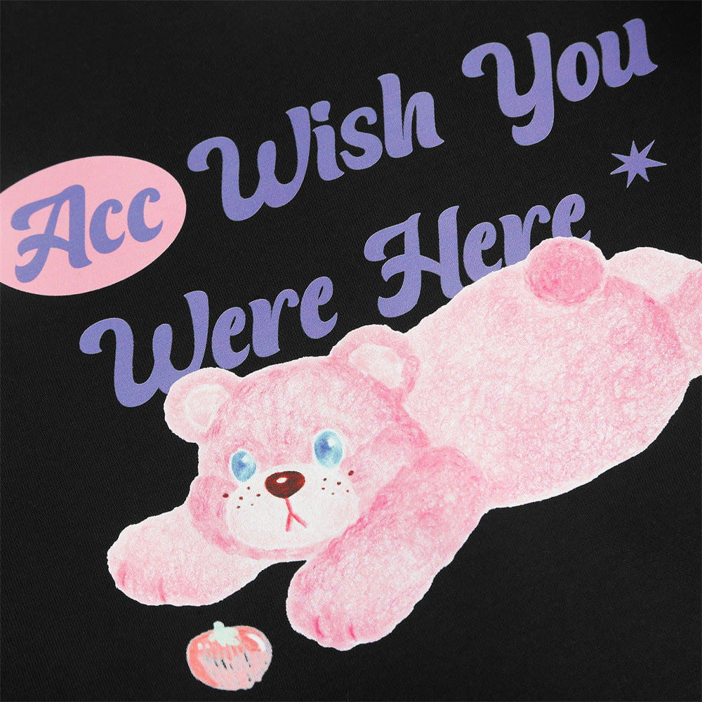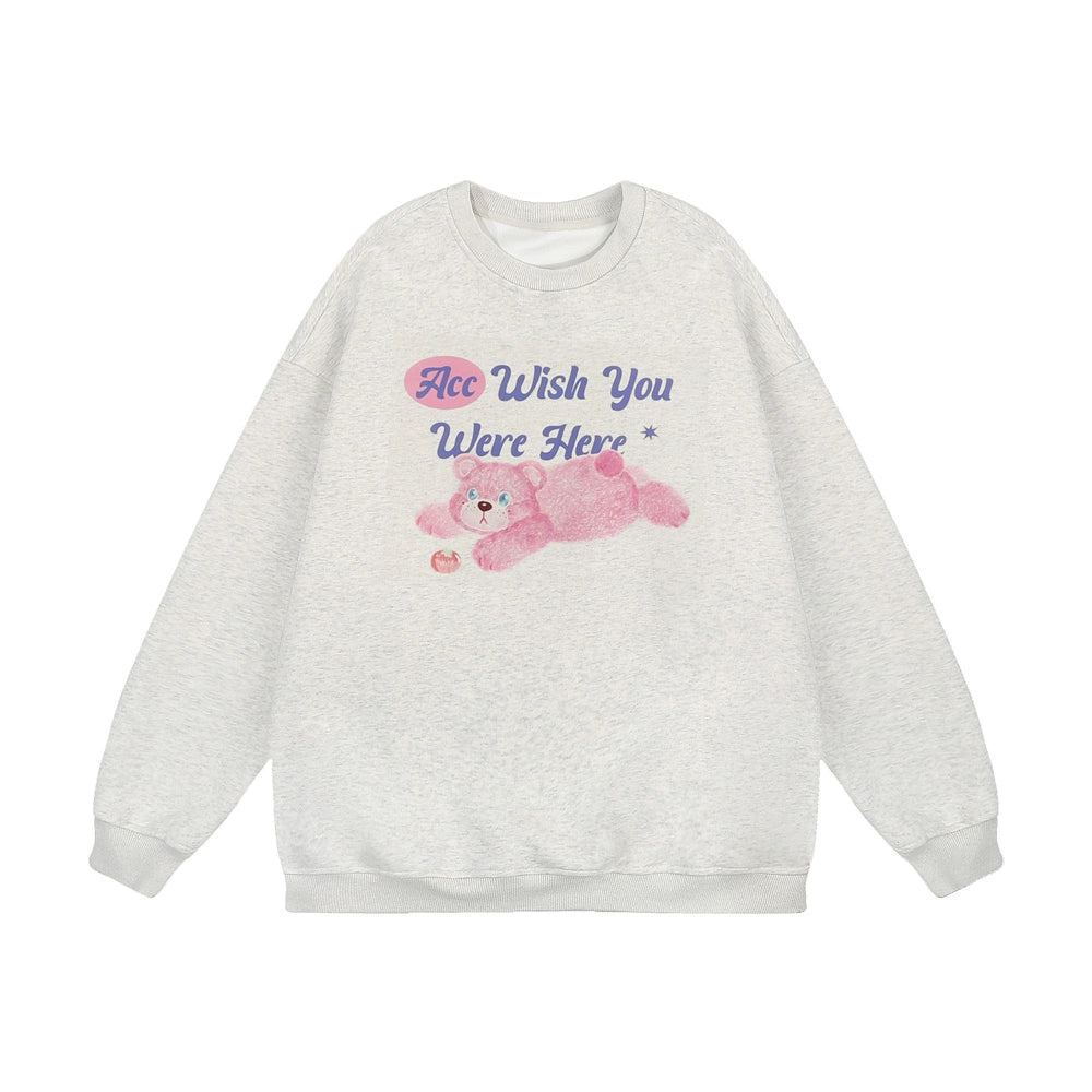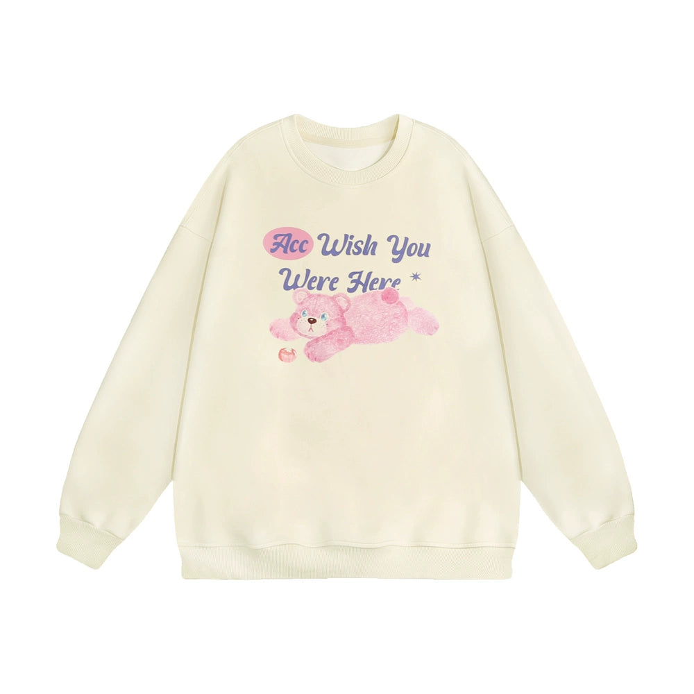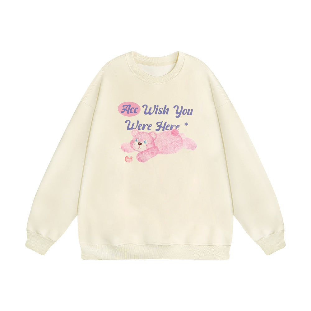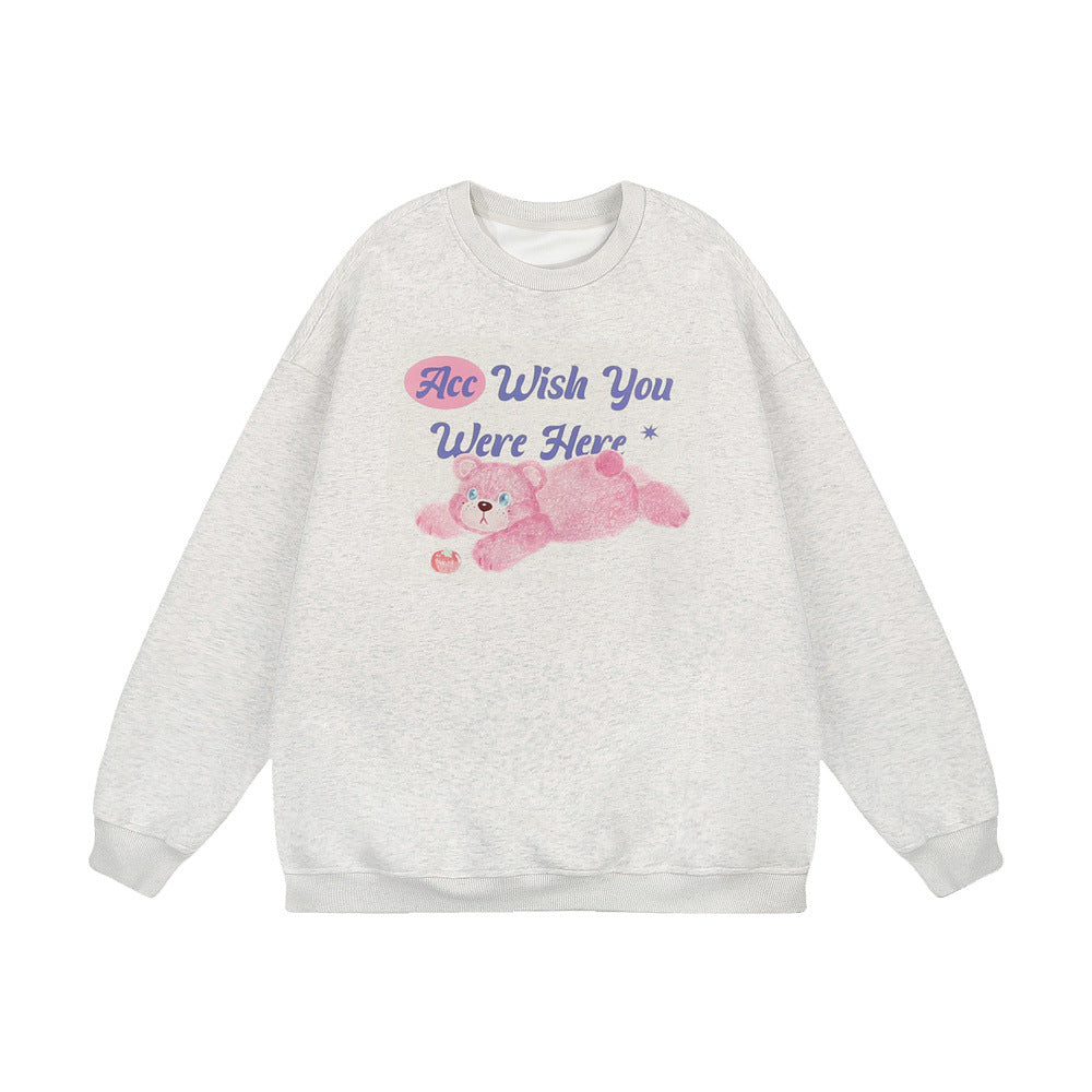 Men Hoodie Autumn and Winter round Neck Sweater Bear Printed Casual Long Sleeve Pullover Loose