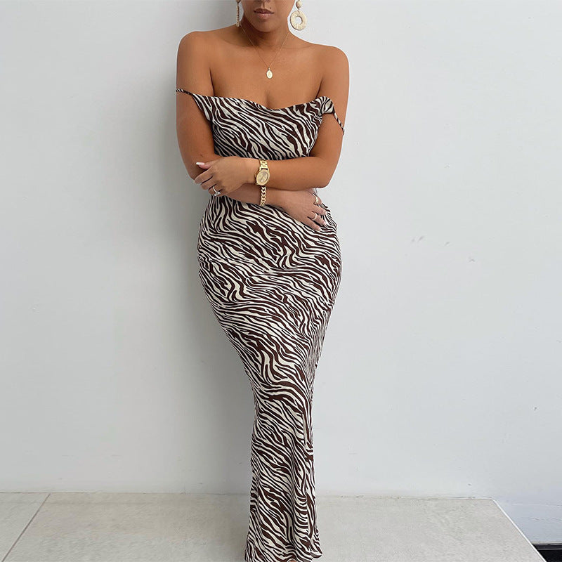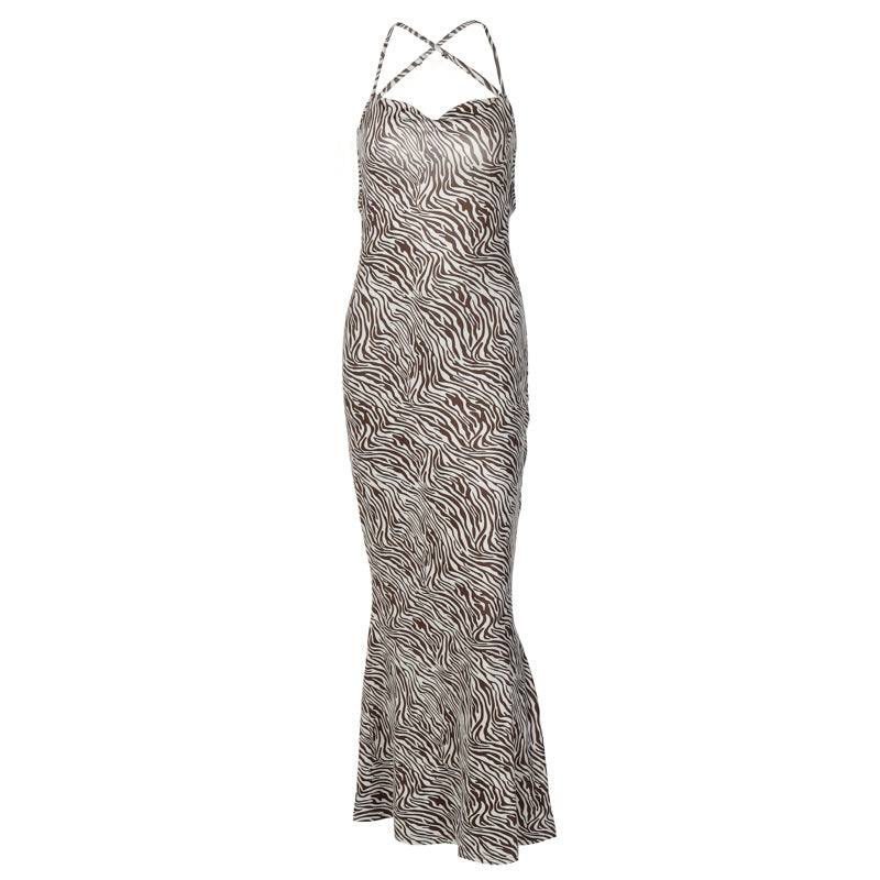 Jungle Print Maxi Dress Sling Backless Zebra Print Dress