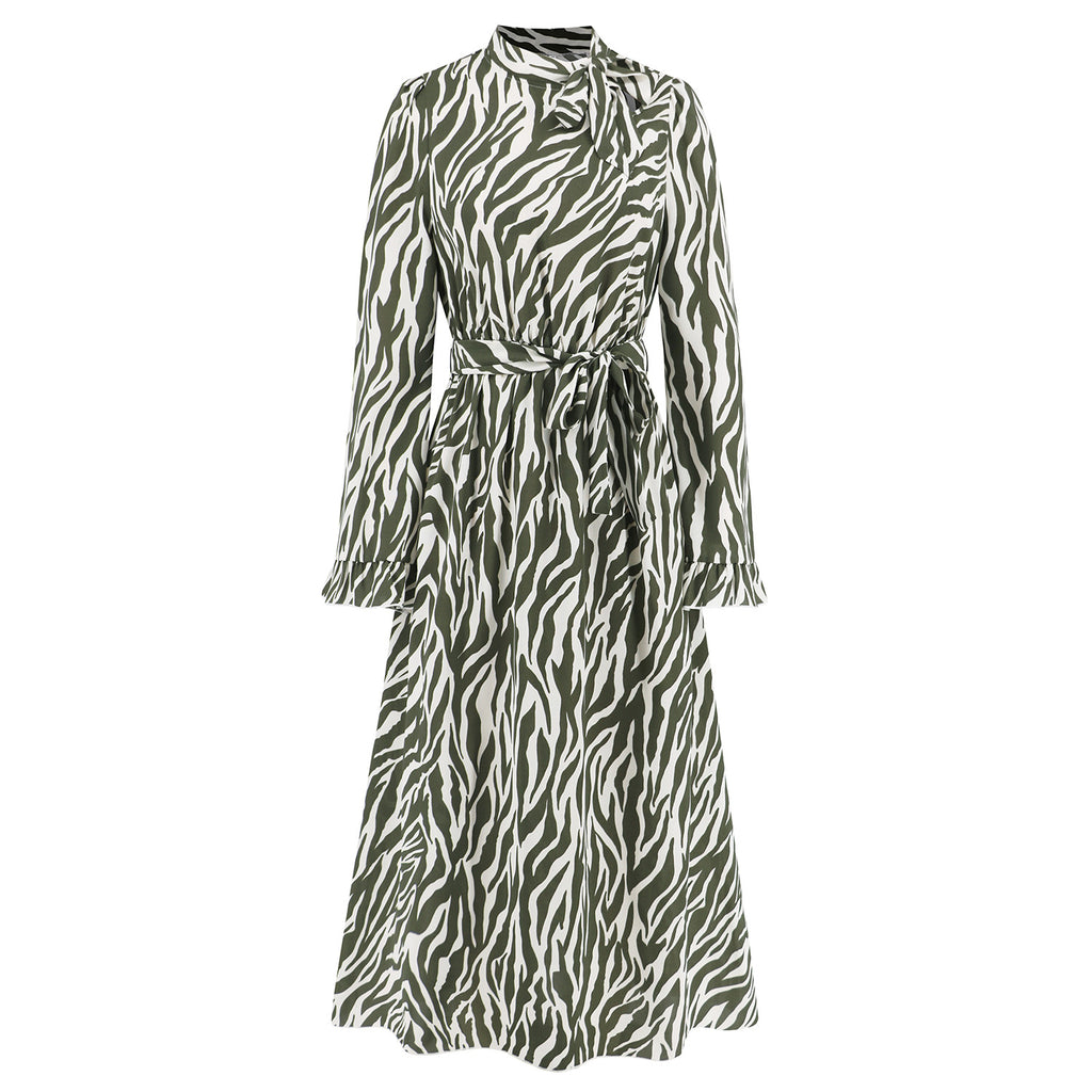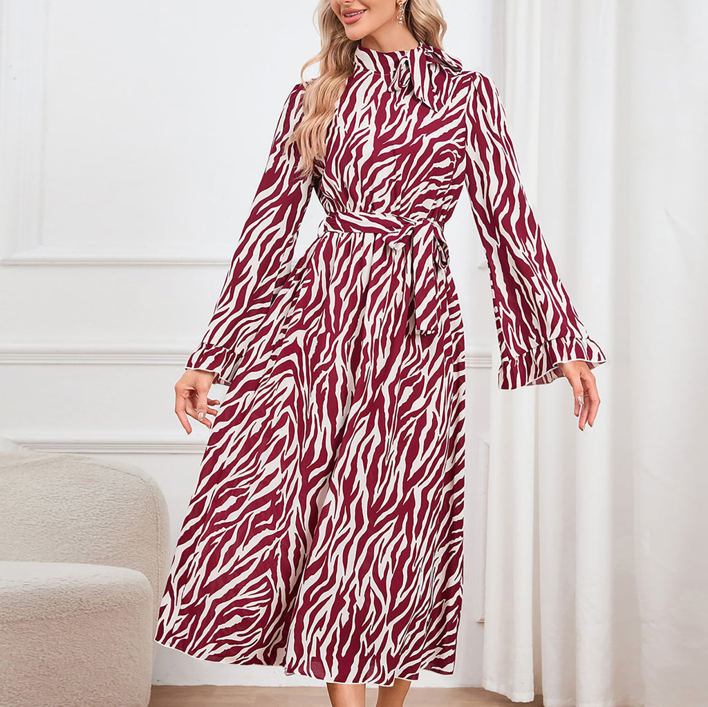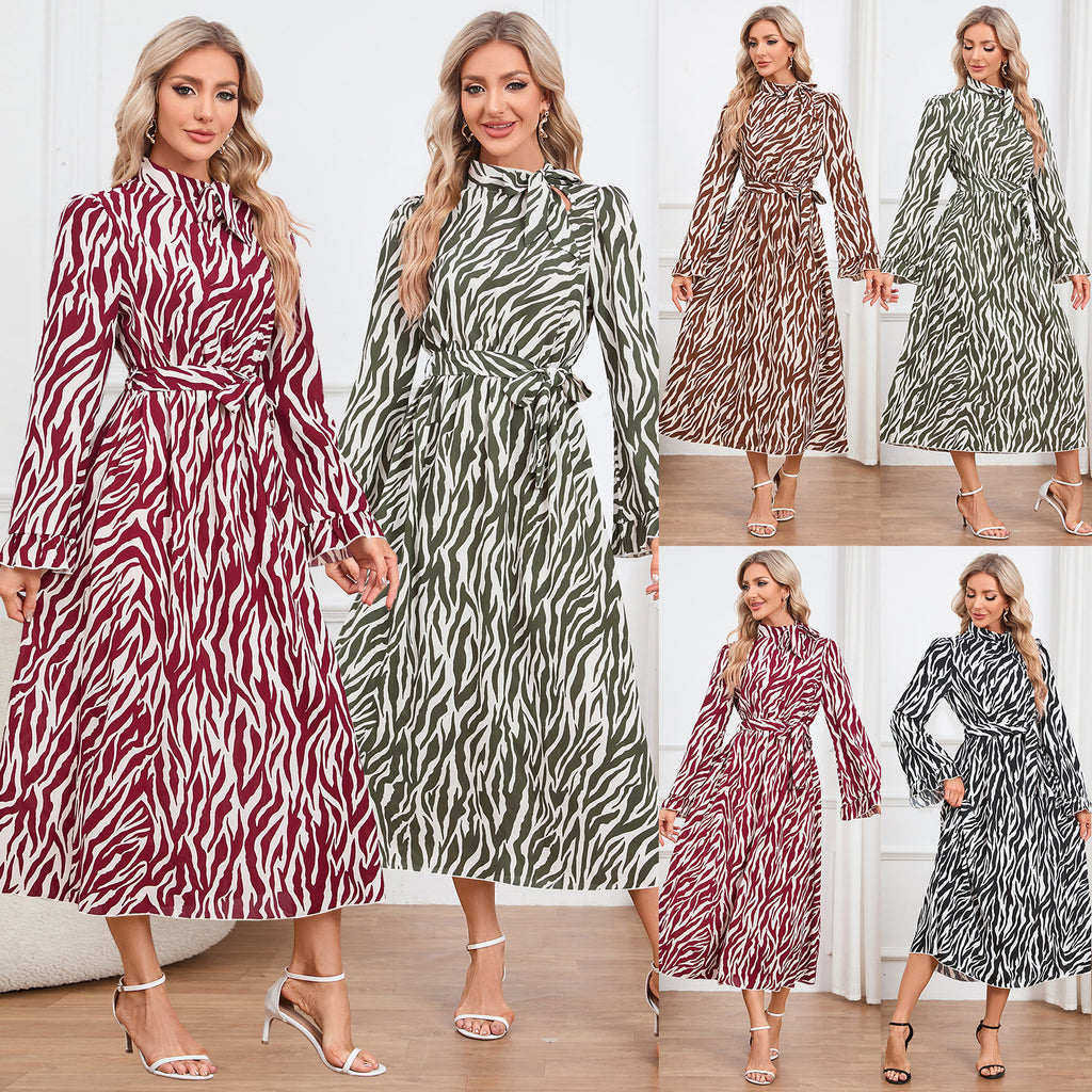 Jungle Print Maxi Dress Stand Collar Thin Band Dress Leopard Print