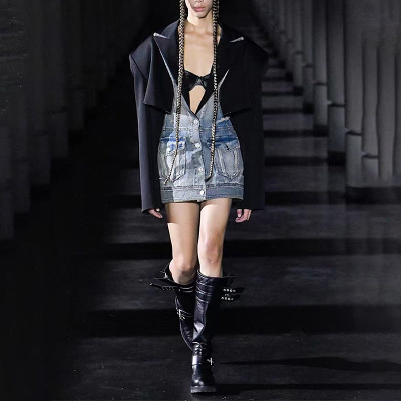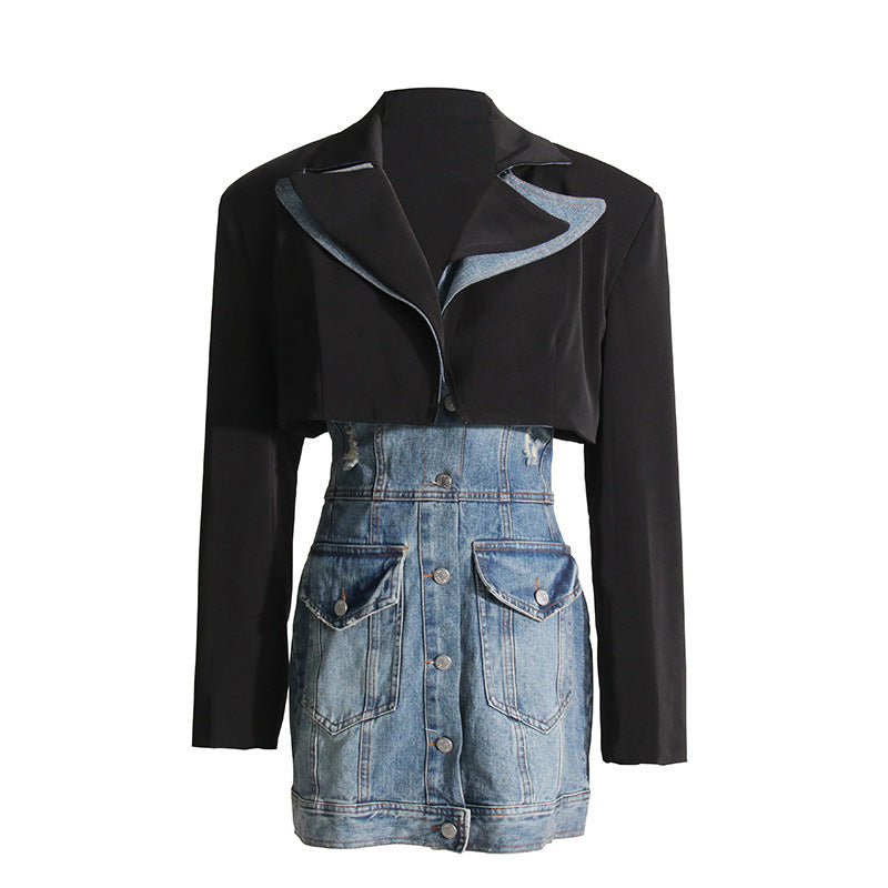 Frankie Shop Hourglass Blzer Women's Clothing Fashionable Jacket Denim Skirt