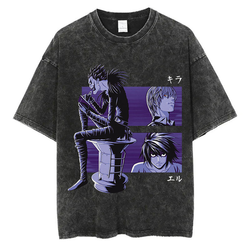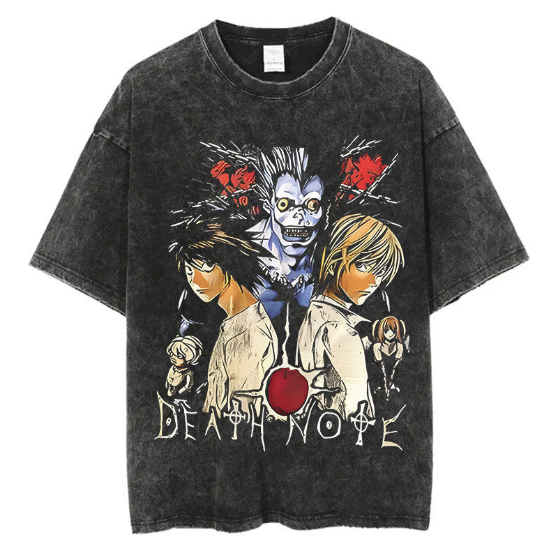 Harajuku Vintage Washed T Shirts Death Note Anime