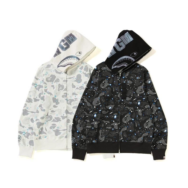Bathing Ape Jacket Autumn and Winter Shark Starry Sky Luminous Cardigan Hoodie Fleece Padded Coat