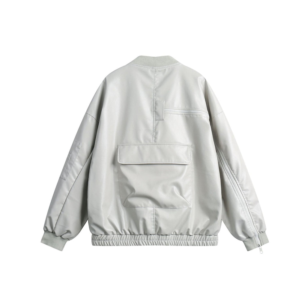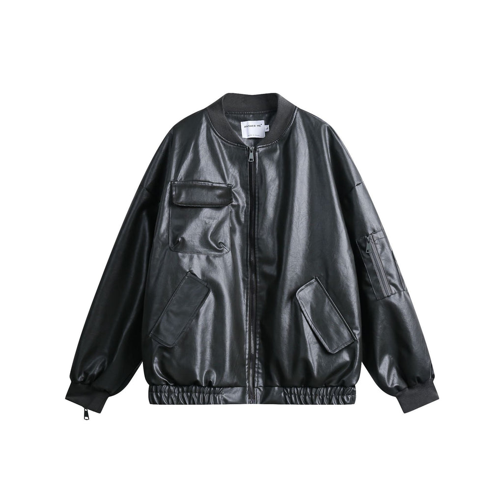 Unisex Jacket Autumn Large Pocket Zipper Leather Jacket Women's Clothing