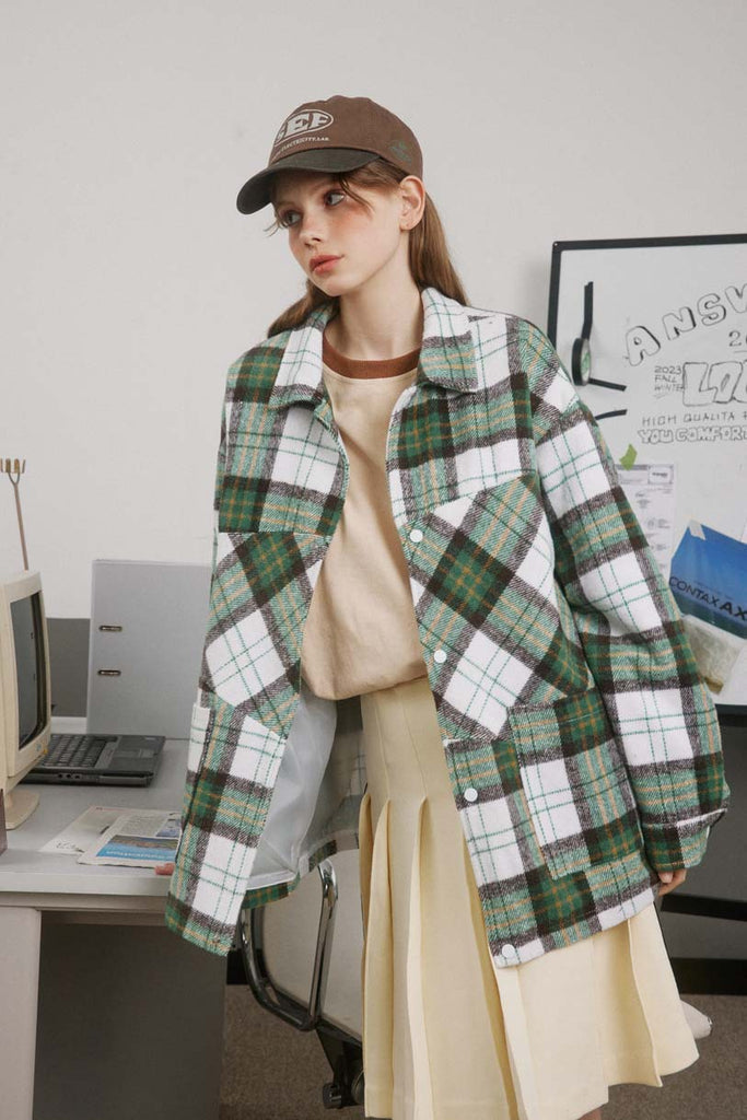Unisex Jacket Fall Plaid Wool Coat Women's Clothing