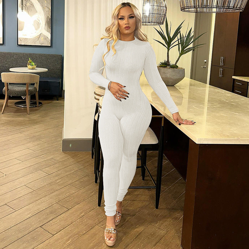 Women Jumpsuit Winter Crew Neck Long Sleeve One-Piece Trousers