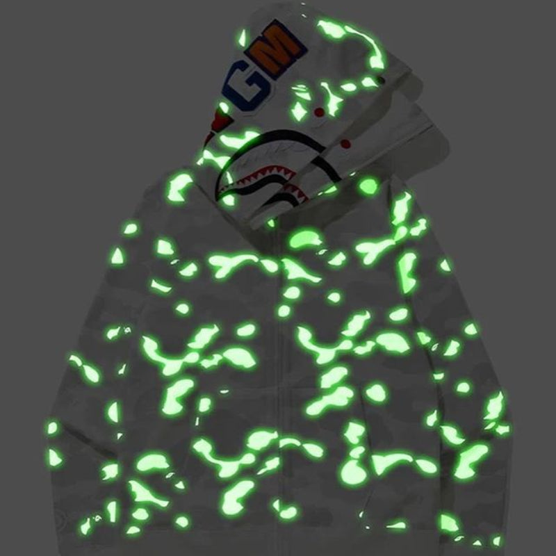Bathing Ape Hoodie Luminous Camouflage Spotted Shark Double Hooded Zip Sweater