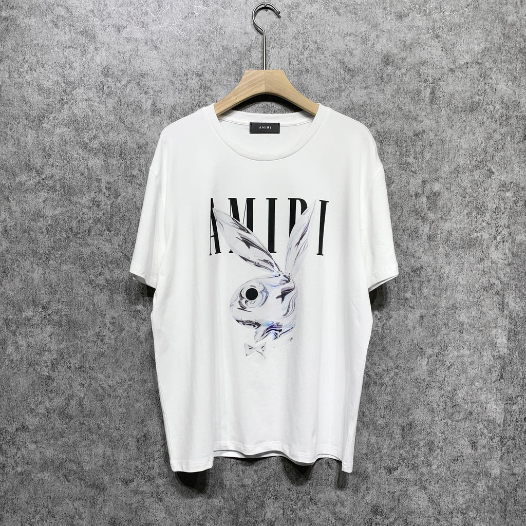 Amiri T Shirt Gray Rabbit Printed Casual Round Neck