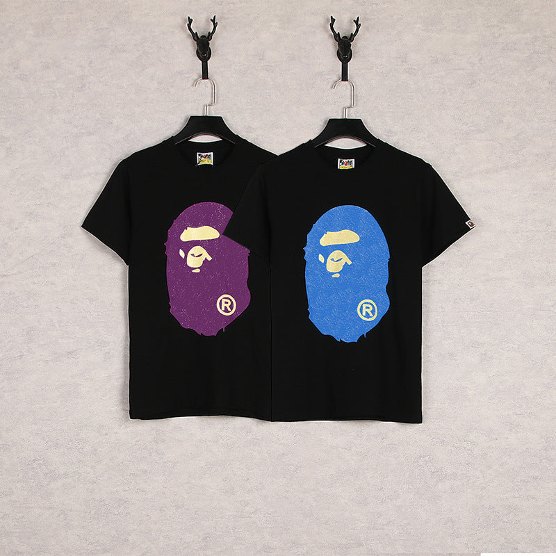 Bathing Ape T Shirt Summer Cartoon Print Casual Large Size Loose Men's and Women's round Neck Short Sleeve T-shirt