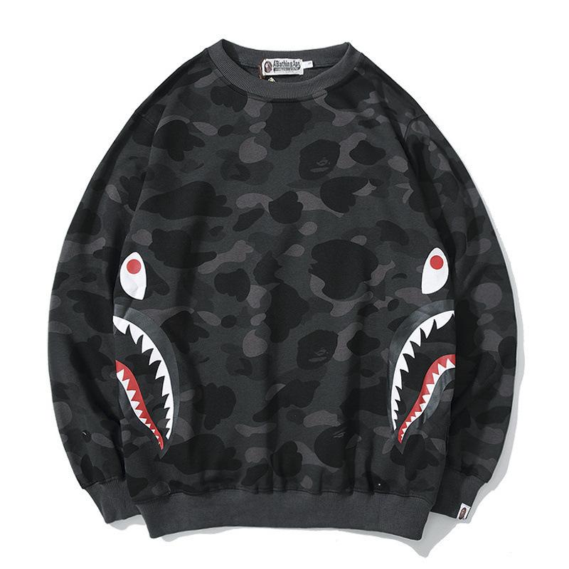 Bathing Ape Sweatshirts Fashion Brand Camouflage Shark Head Print Cotton Terry round Neck Sweater