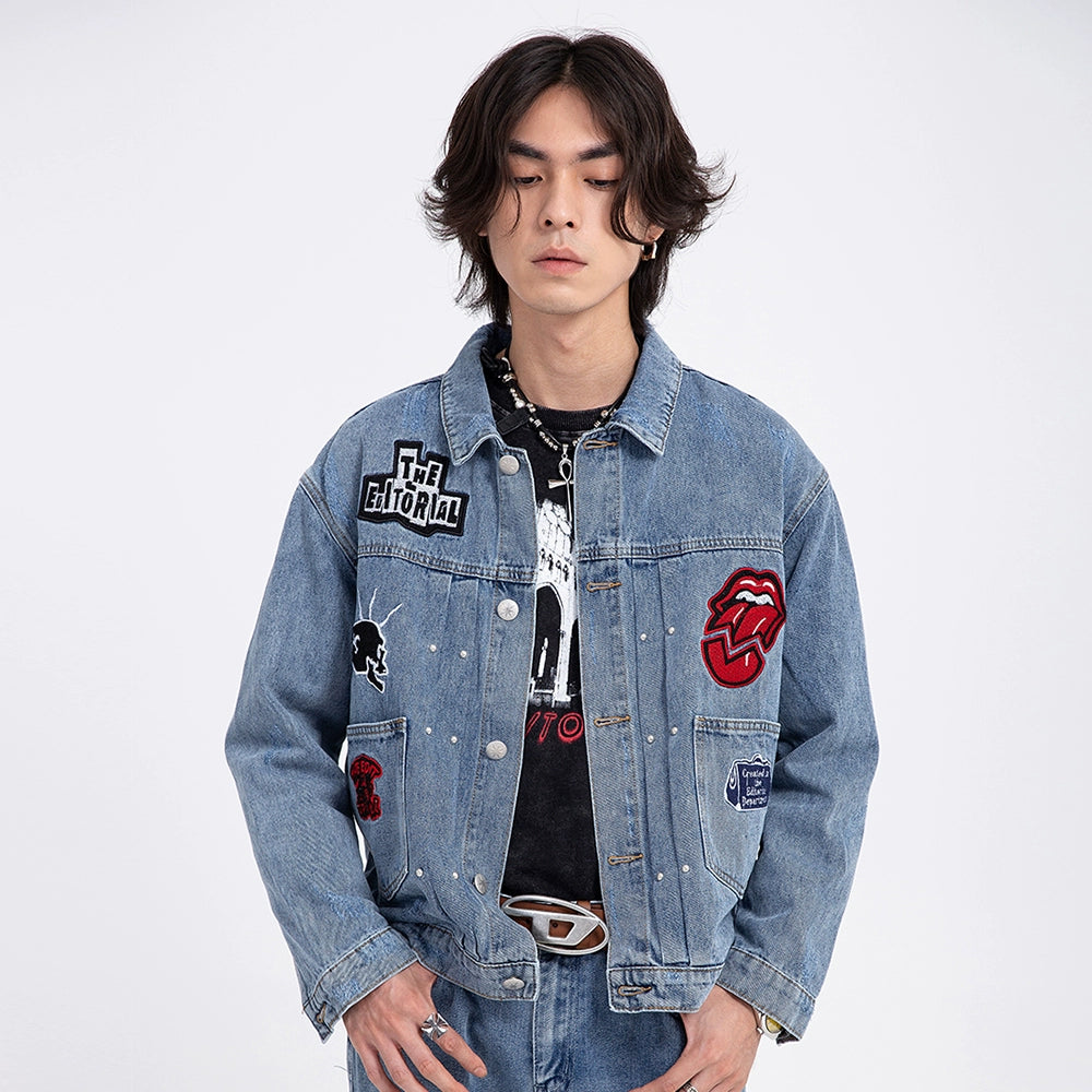 Men Denim Jacket Men's Spring and Autumn Loose Washed-out Denim Clothes Jacket