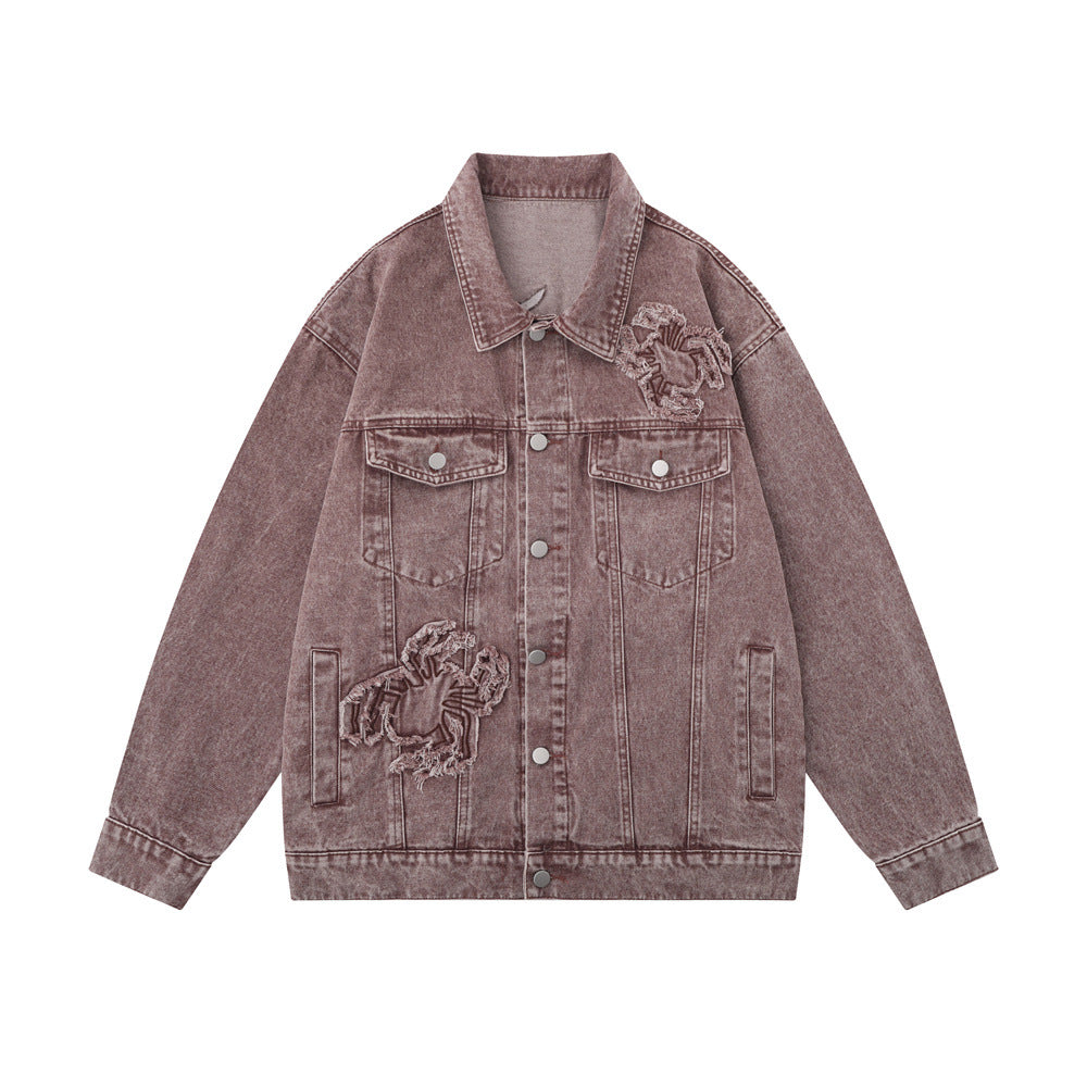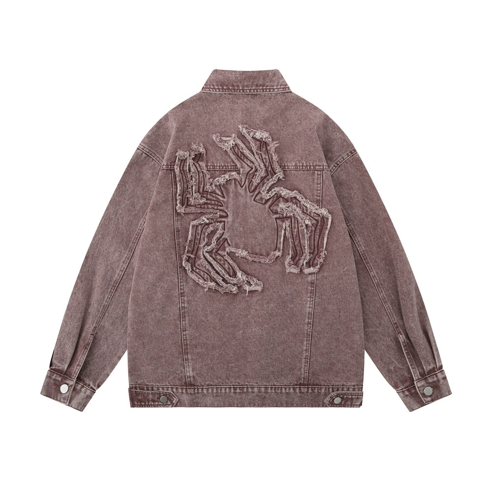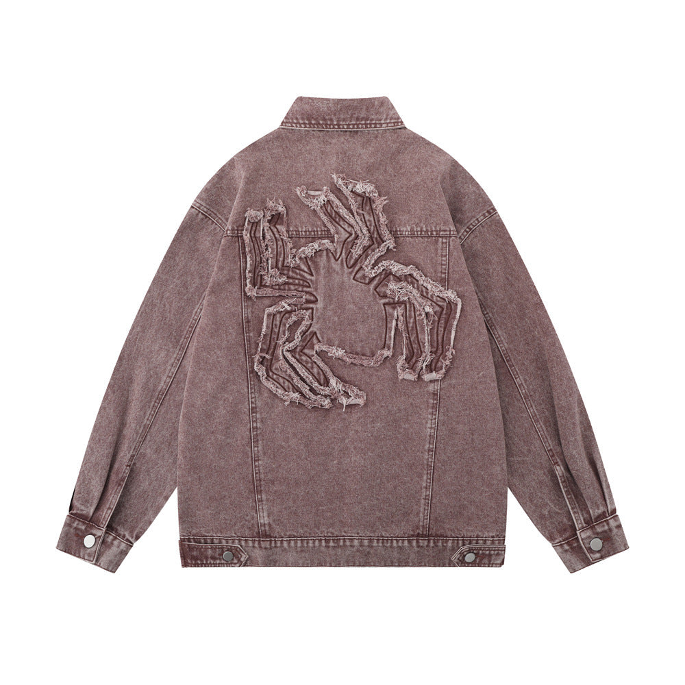 Men Denim Jacket Embroidered Spider Denim Jacket Men Loose Wash Do the Old Cowboy Coat