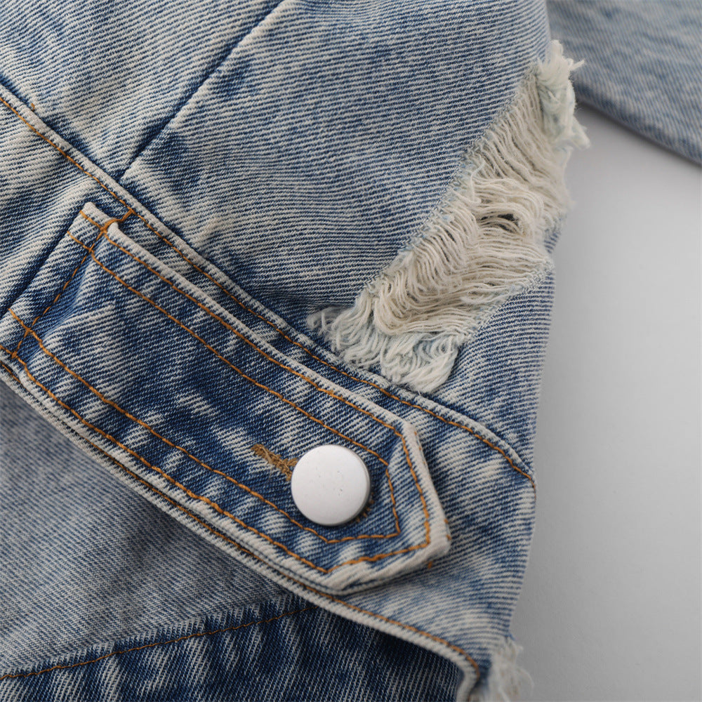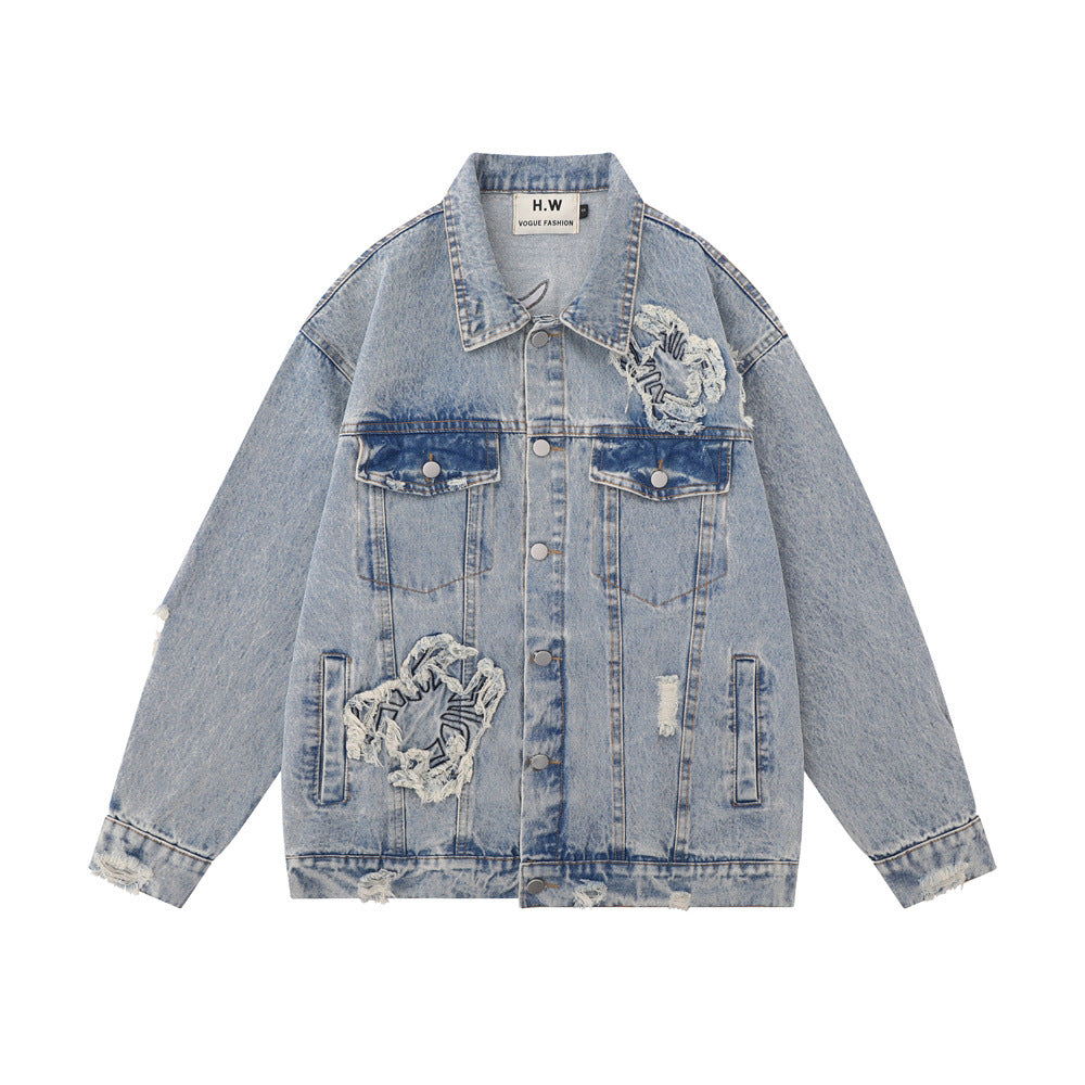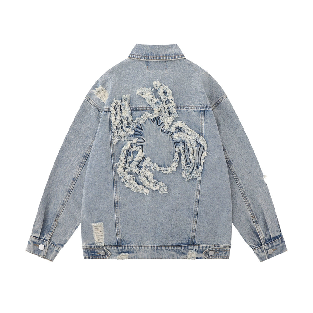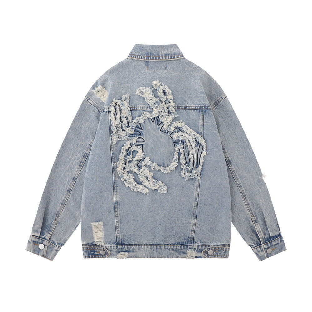 Men Denim Jacket Embroidered Spider Denim Jacket Men Loose Wash Do the Old Cowboy Coat