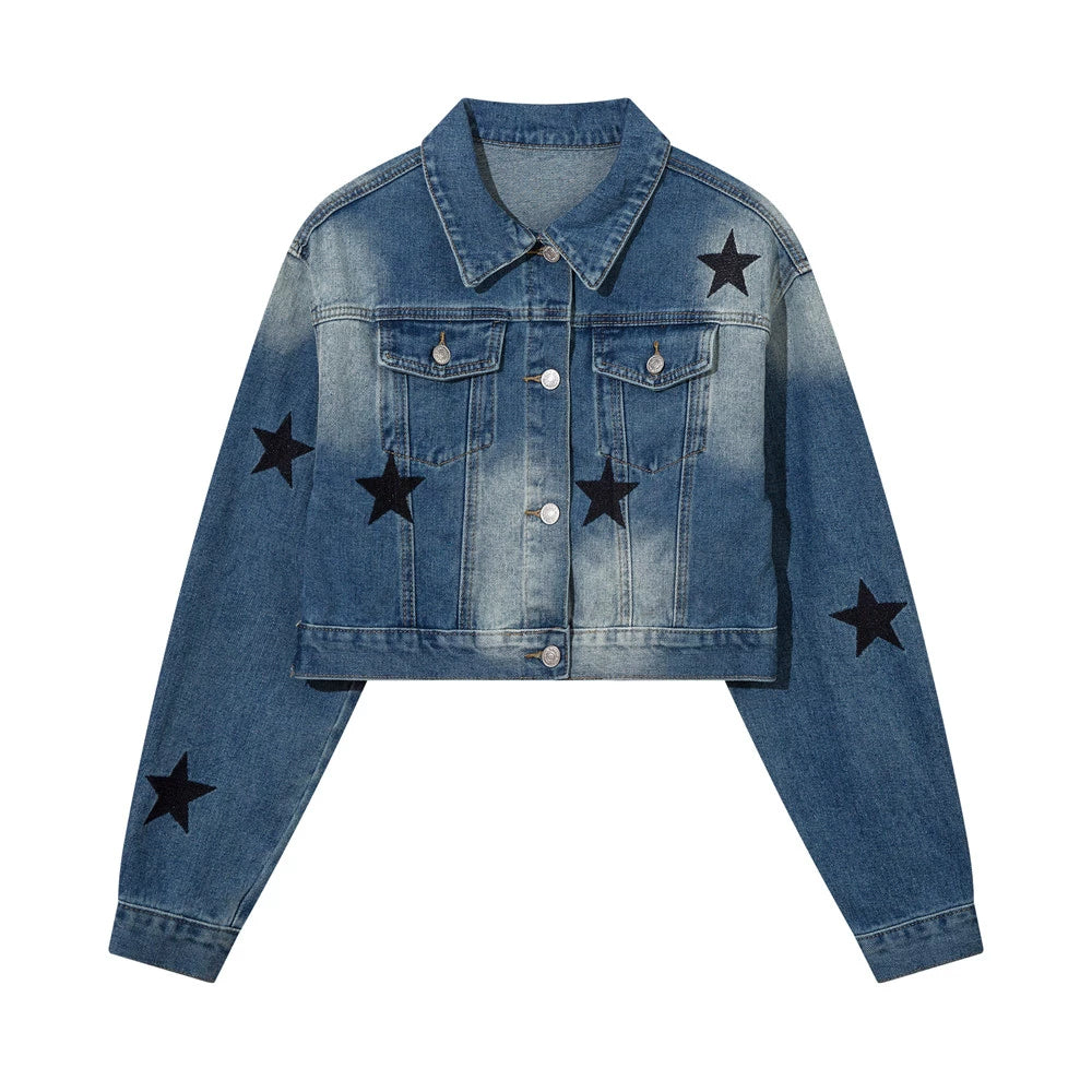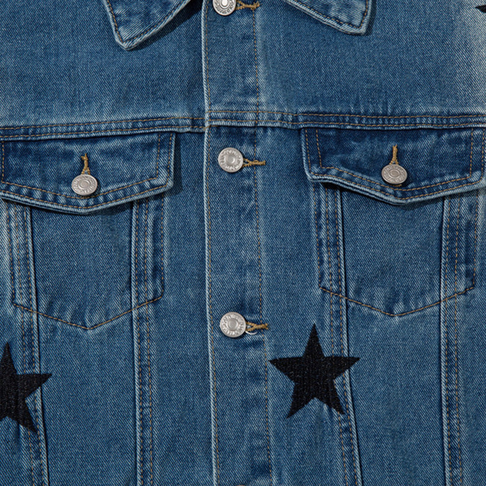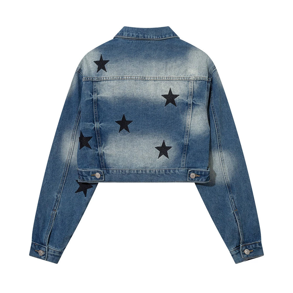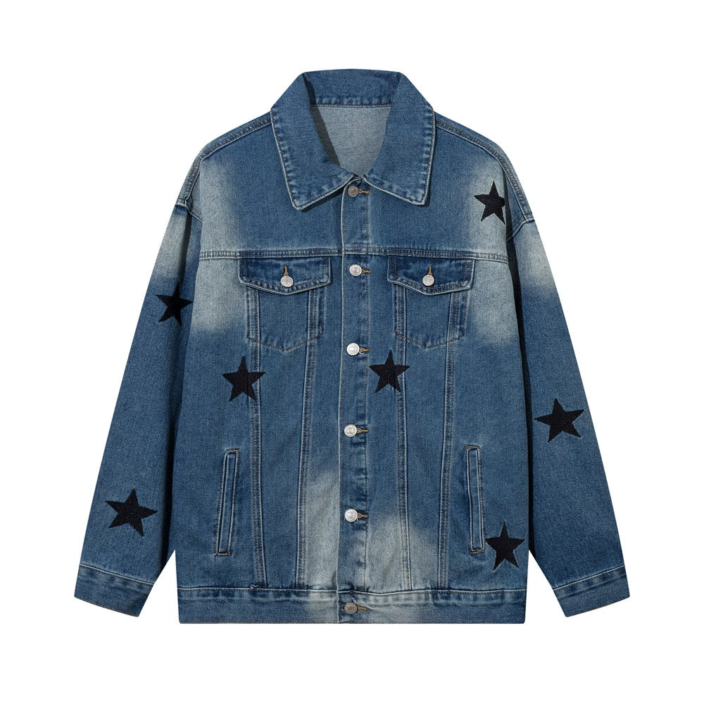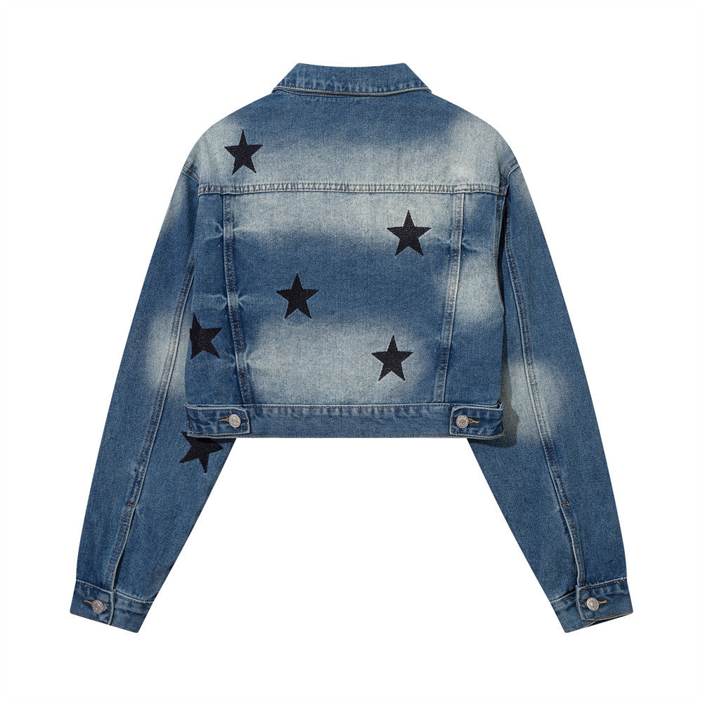 Men Denim Jacket XINGX Embroidered Spray Denim Jacket Men and Women Couple Jacket Spring and Autumn