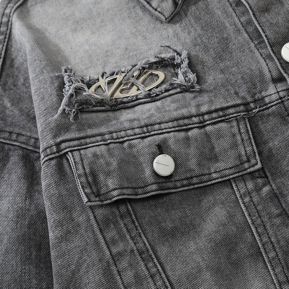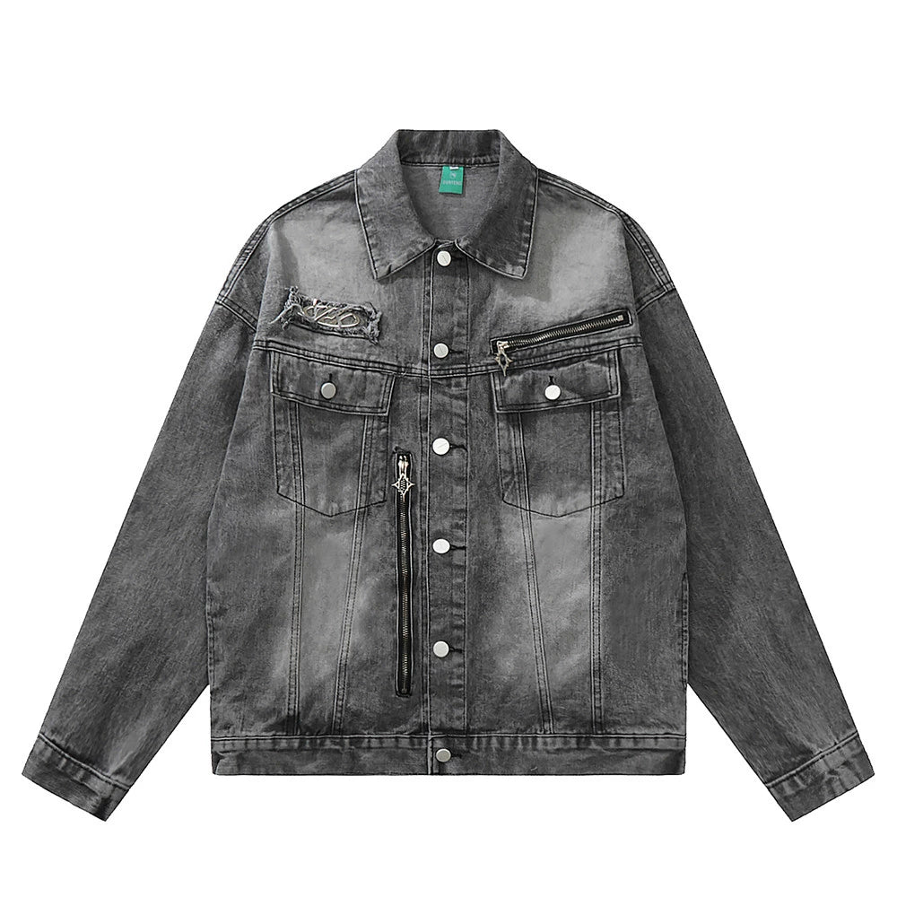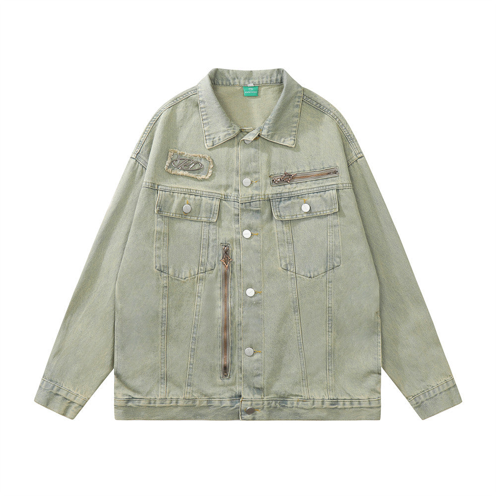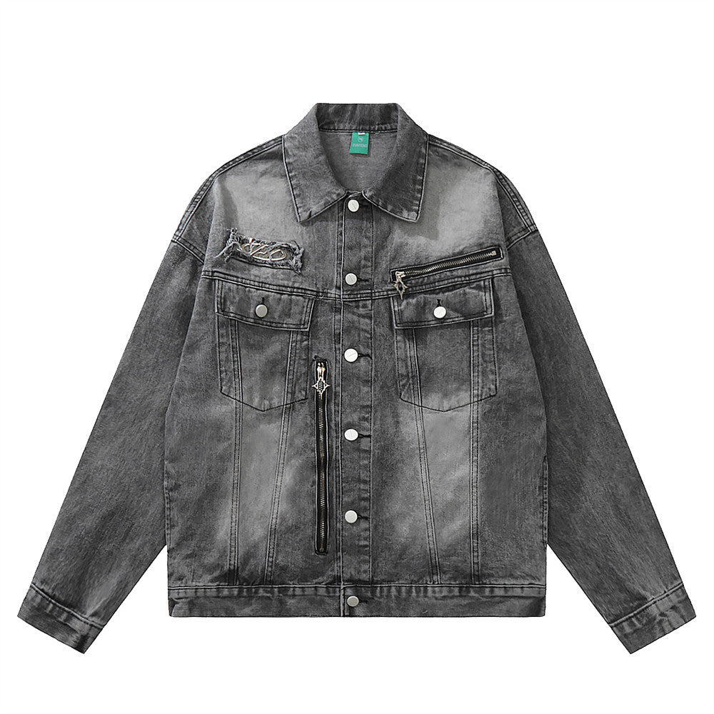 Men Denim Jacket Denim Coat Men's Clothing Spring and Autumn Loose Washed-out Distressed Jacket