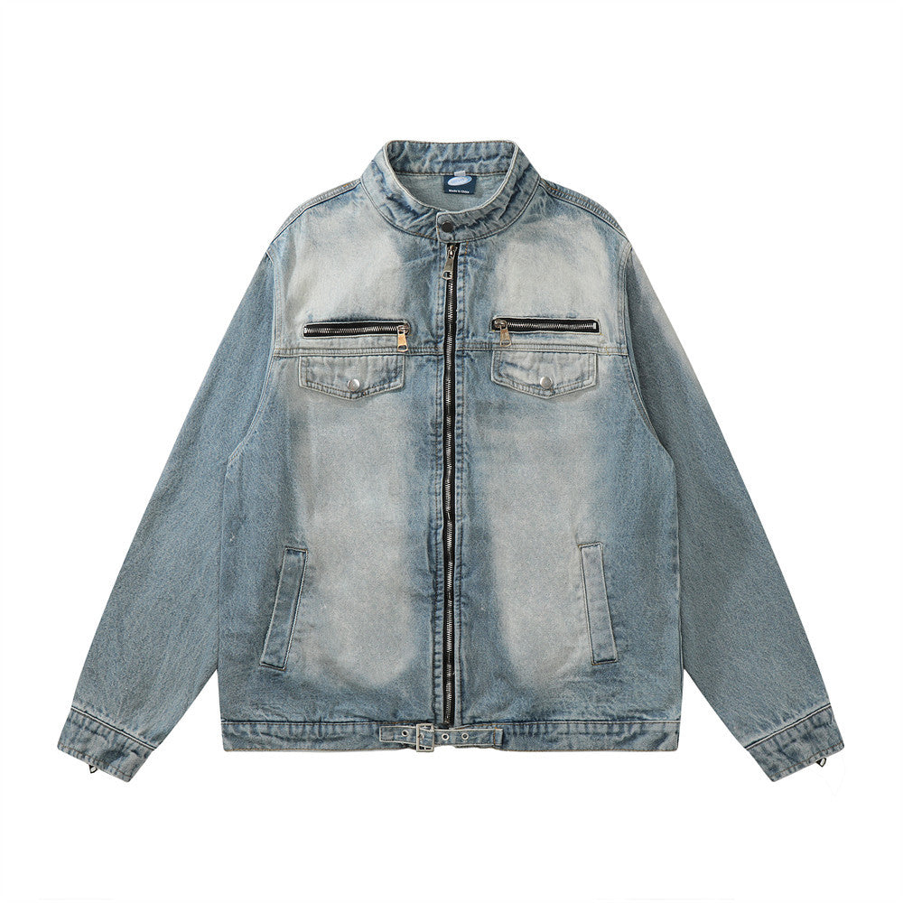 Men Denim Jacket Washed Do the Old Cowboy Jacket Men's Ins Denim Jacket Autumn