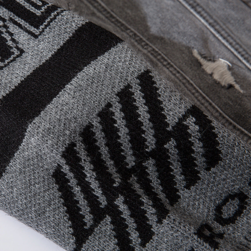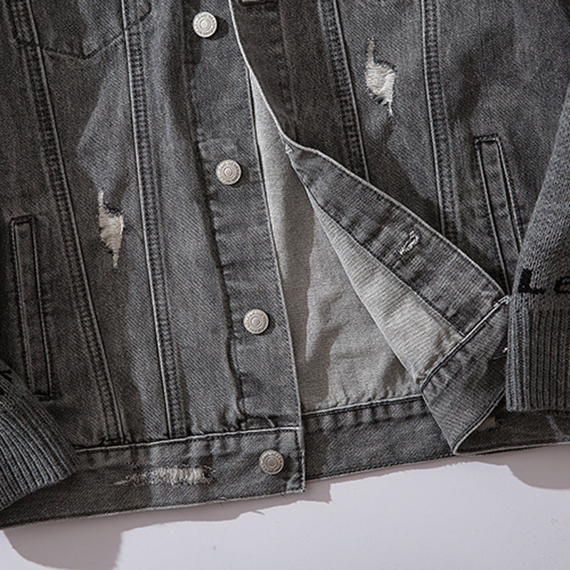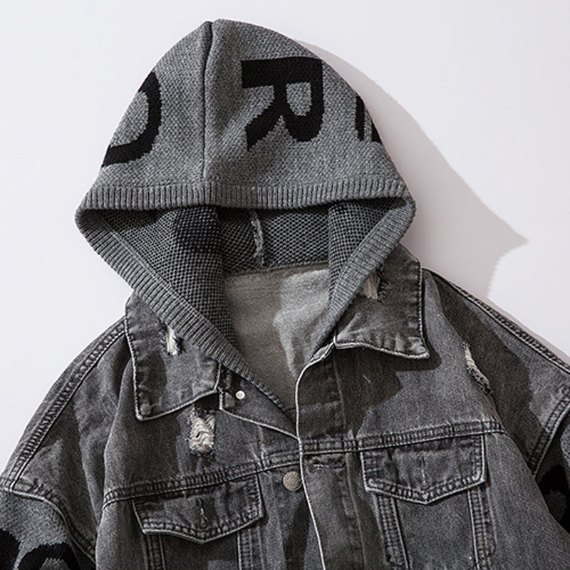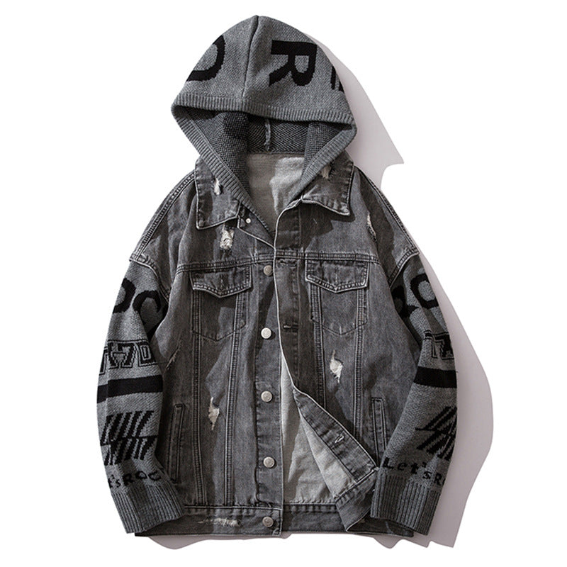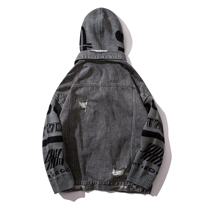 Men Denim Jacket Men's Spring and Autumn Loose Stitching Sweater Hooded Jacket