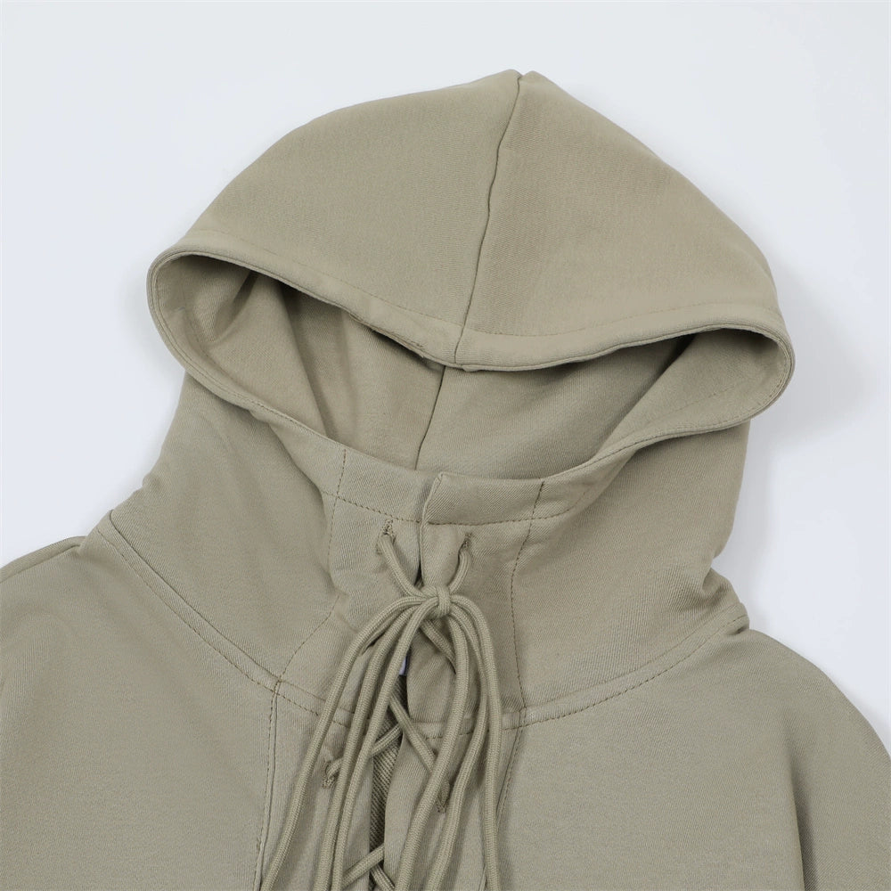 Men Hoodie Drawstring Lace Hooded Sweater Men's Loose Masked Turtleneck Pullover Hoodie Autumn and Winter