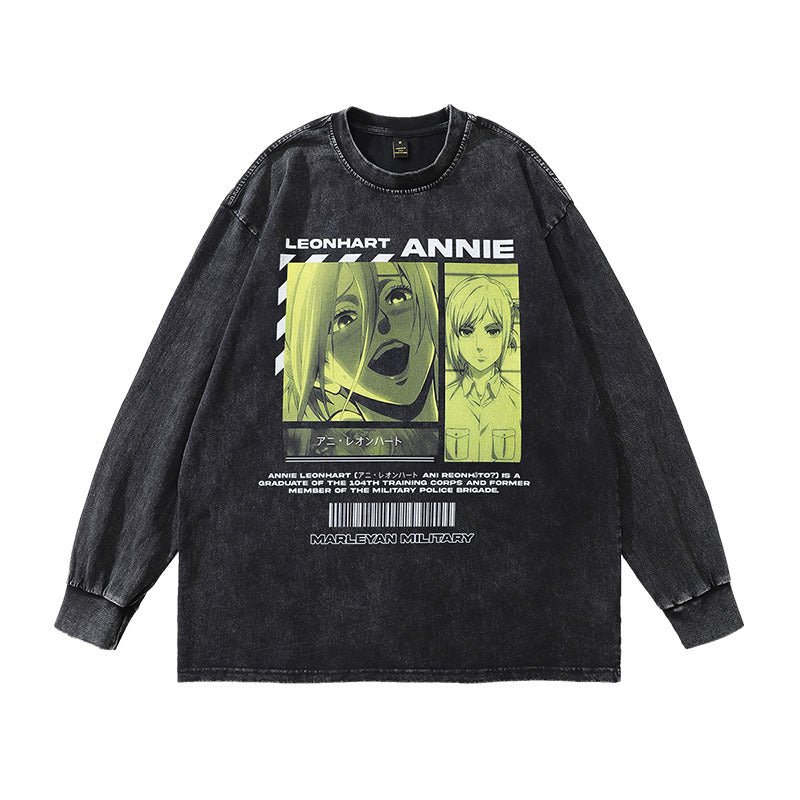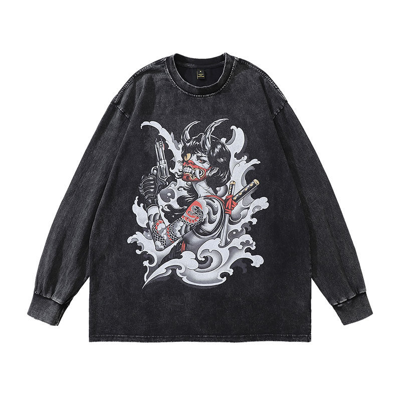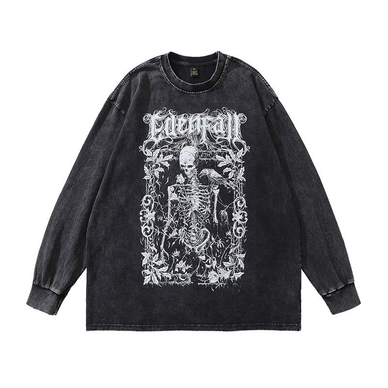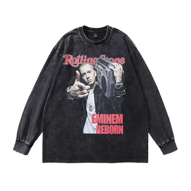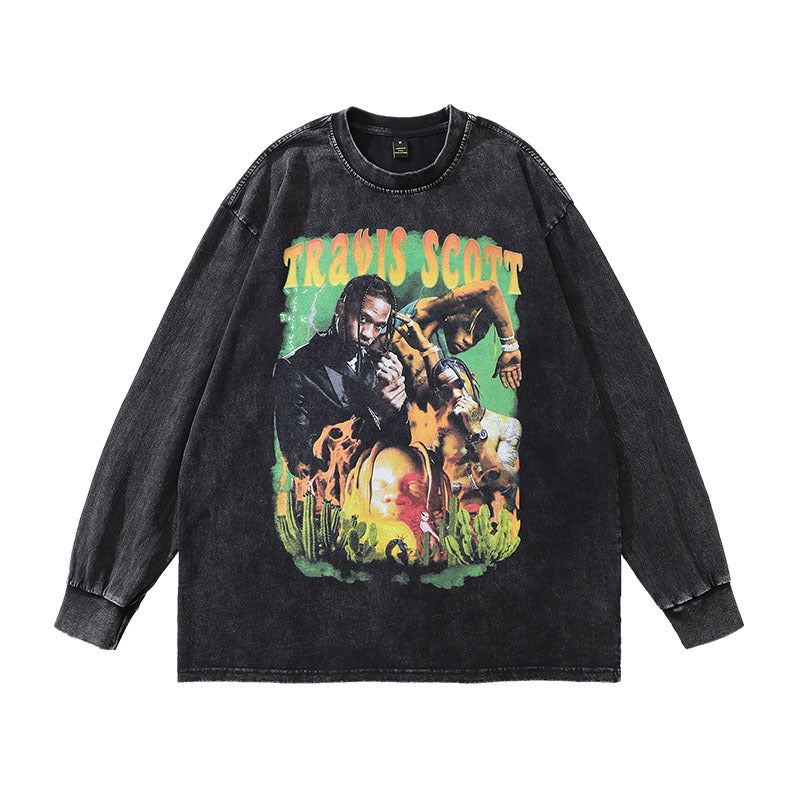 Men Long Sleeve Shirt Vintage Printed Washed Long Sleeve T-shirt Male and Female Trendy Brand