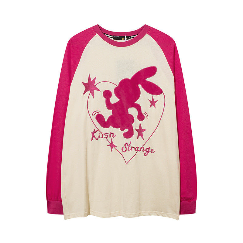 Men Long Sleeve Shirt Sweet Cool Contrast Color Stitching Long Sleeve T-shirt Men and Women Couple