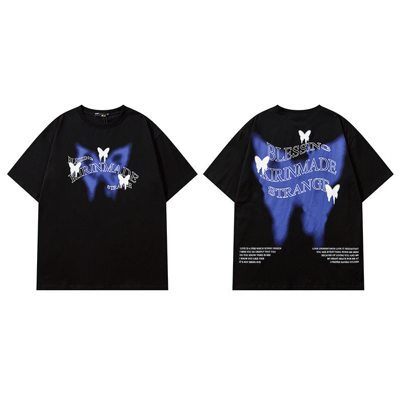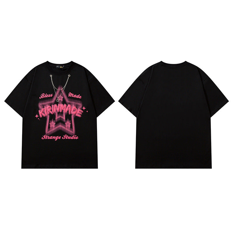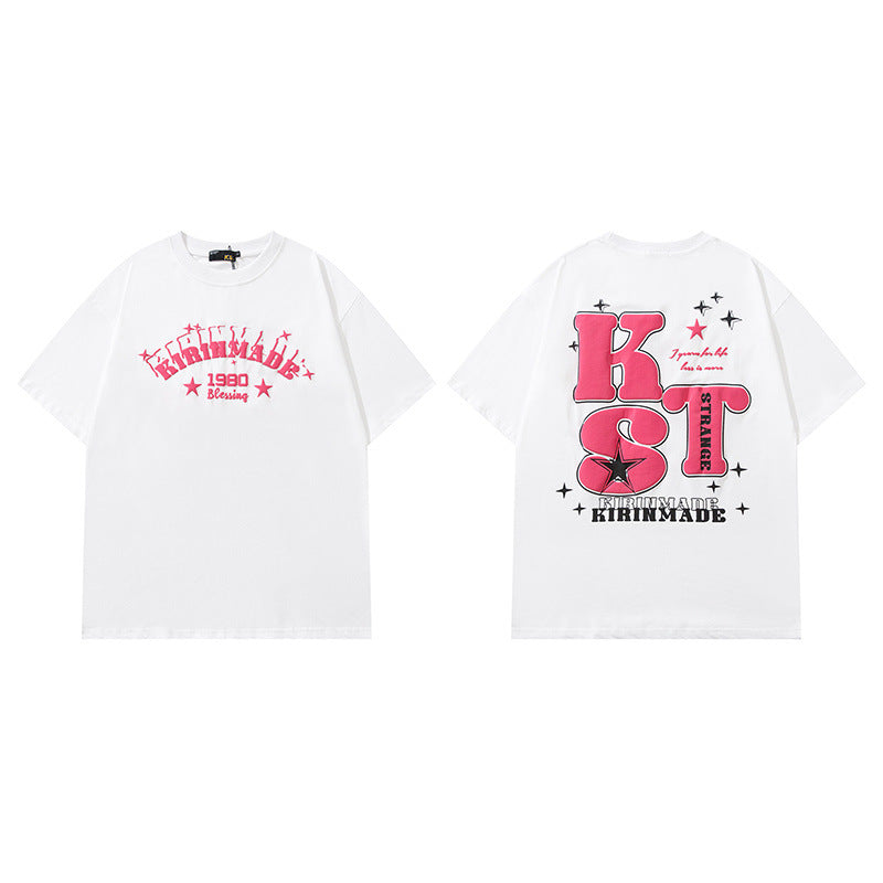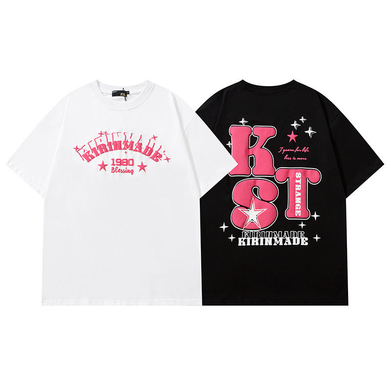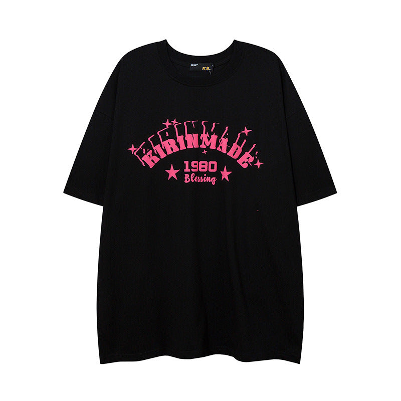 Men T Shirt Letter Print Short-Sleeve T-shirt Loose Men and Women Casual