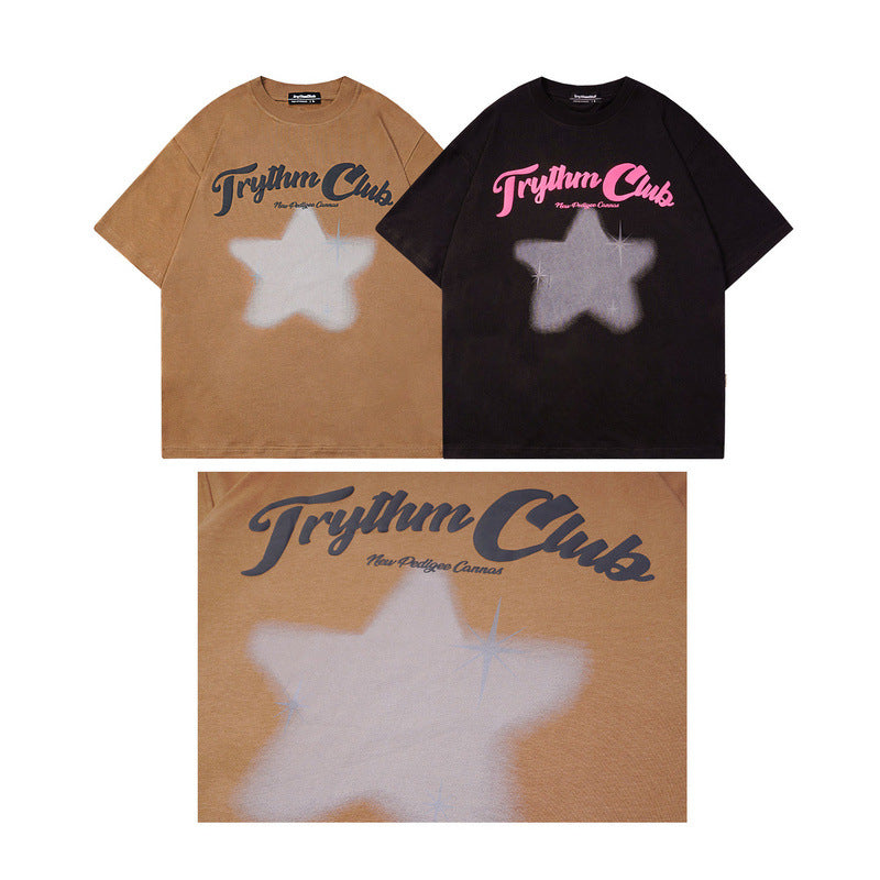 Men T Shirt Men's Clothing American Street Retro Casual Couple Short Sleeve T-shirt