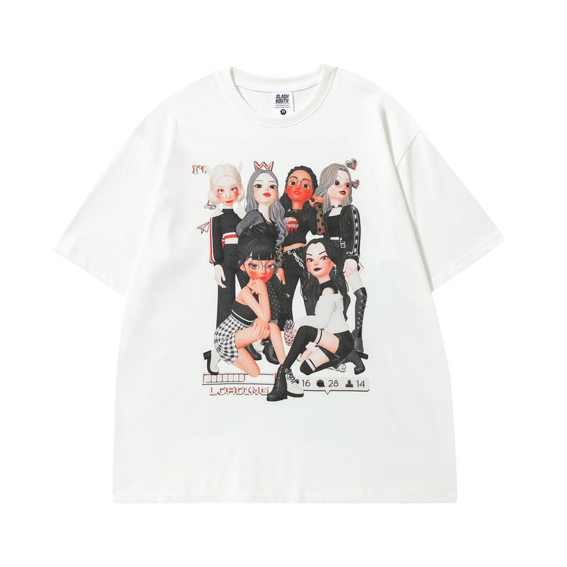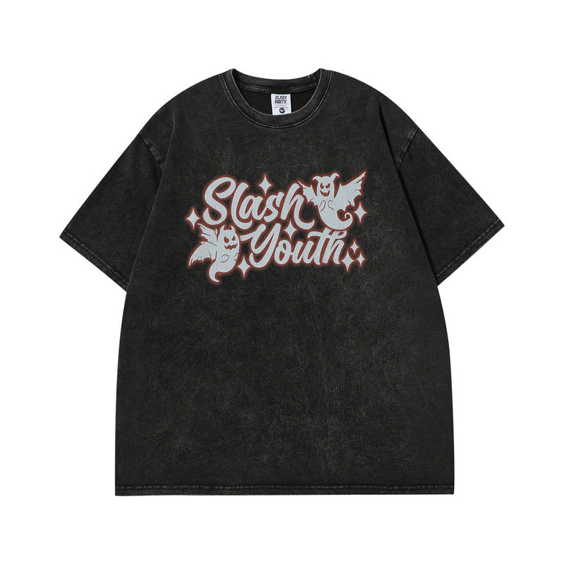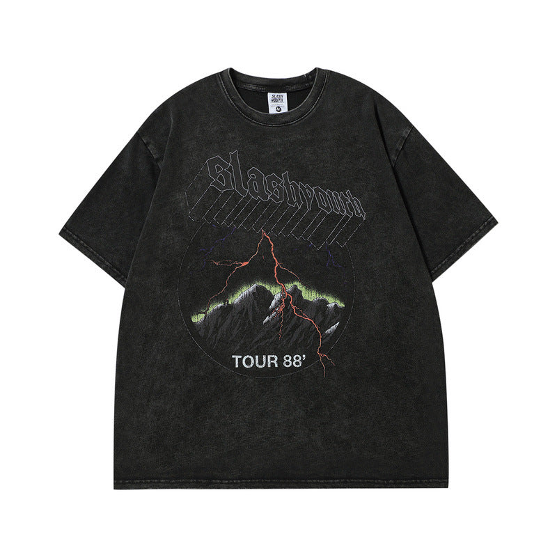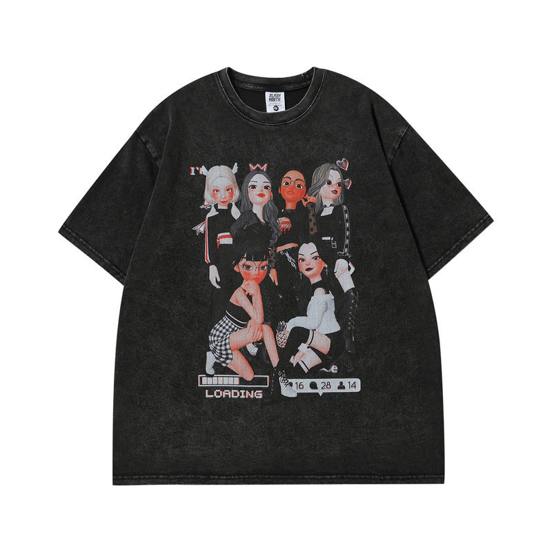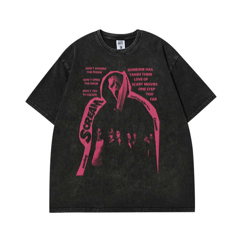 Men T Shirt Letter Print Worn Looking Washed-out Short Sleeve T-shirt Female Hip Hop