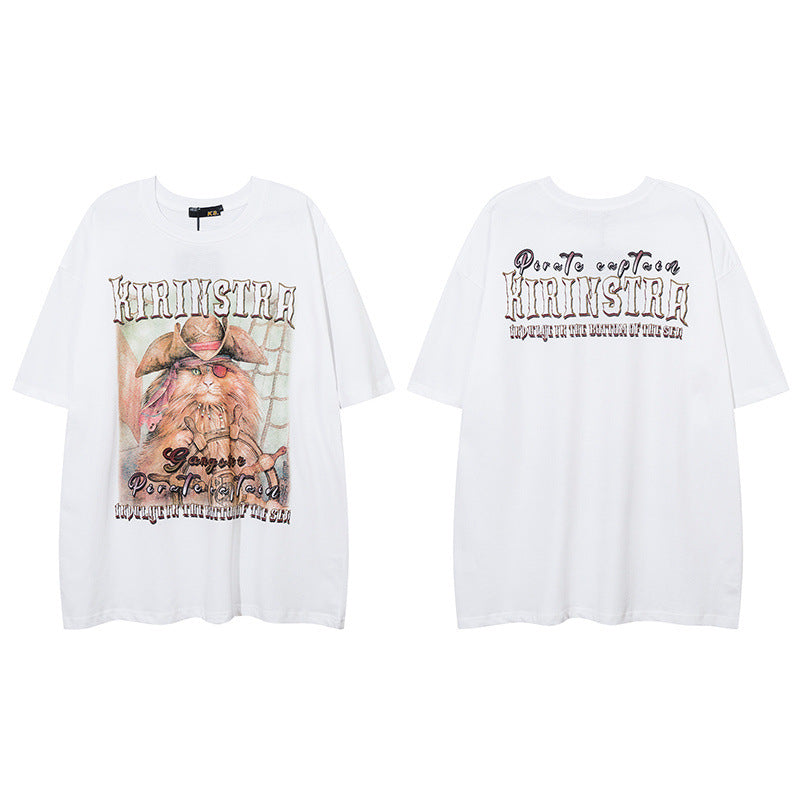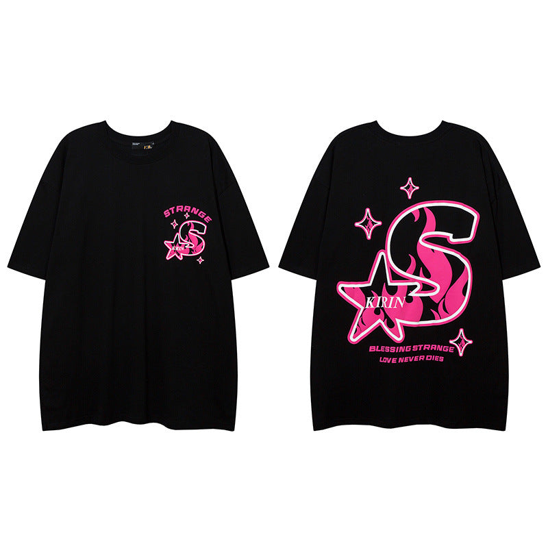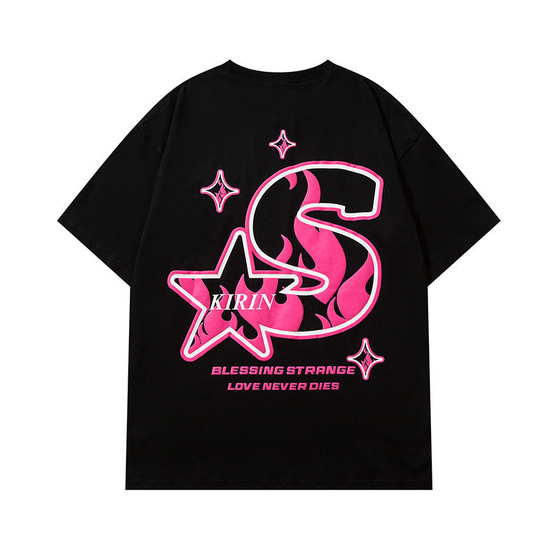 Men T Shirt Letter Print Short-Sleeve T-shirt Men and Women Loose Lovers Wild