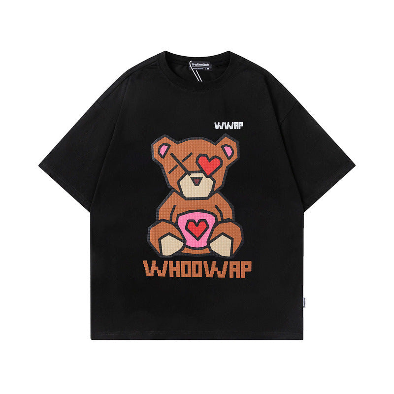 Men T Shirt Letter Short Sleeve T-shirt Men's Retro Loose Pure Cotton Couple