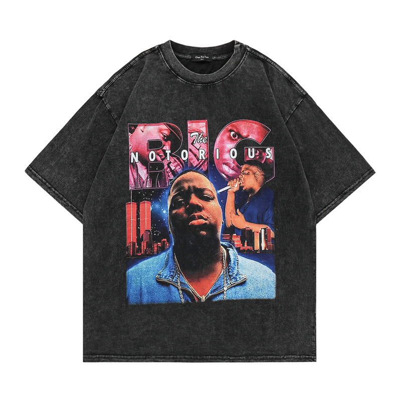 Men's T Shirt Washed Distressed Cross Printed Short-Sleeved T-shirt Men's Loose
