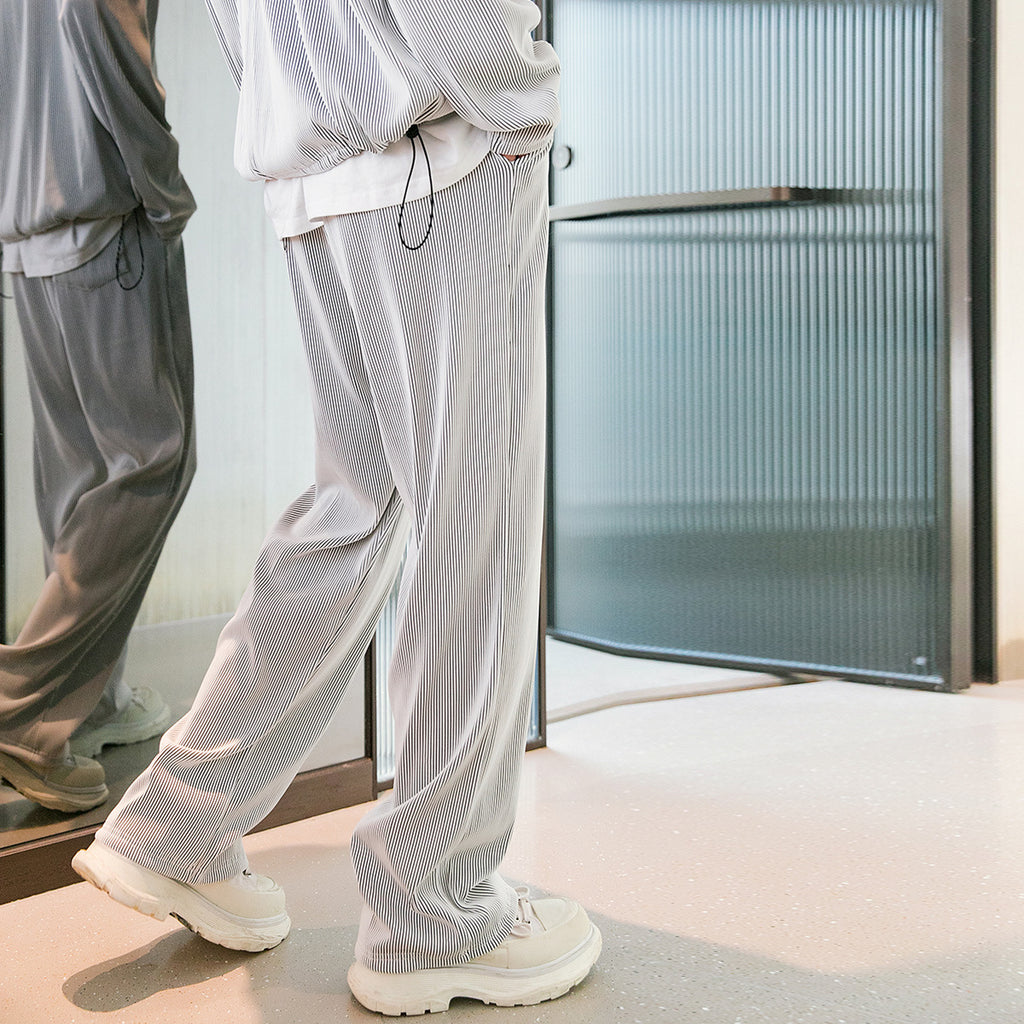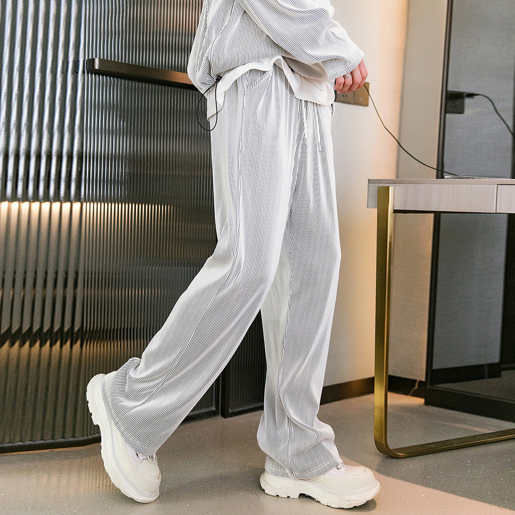Men Sweatpants Trendy Autumn Loose Striped Straight Wide-Leg Pants