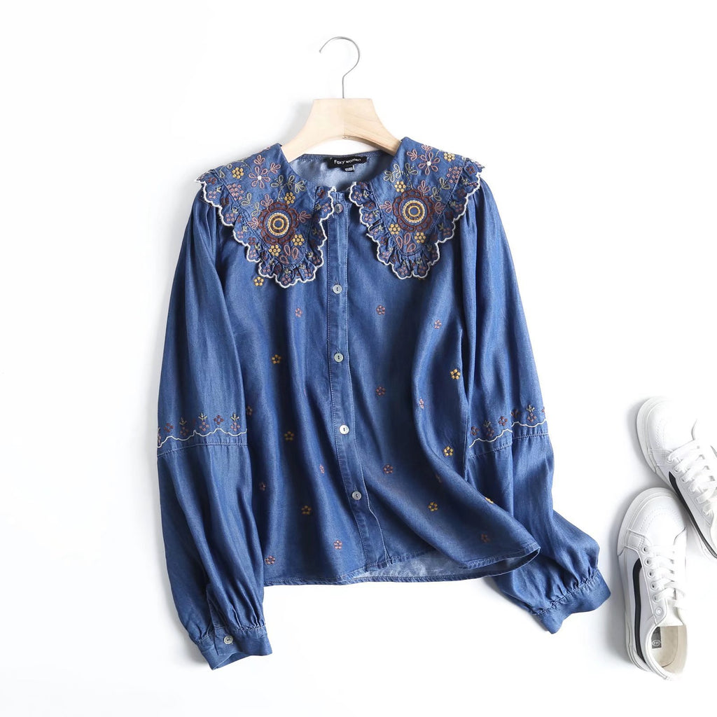 Women T-Shirt Women's Spring and Autumn Denim Long-Sleeved Shirt