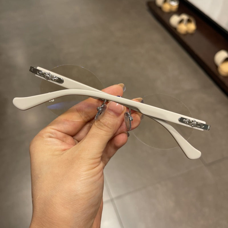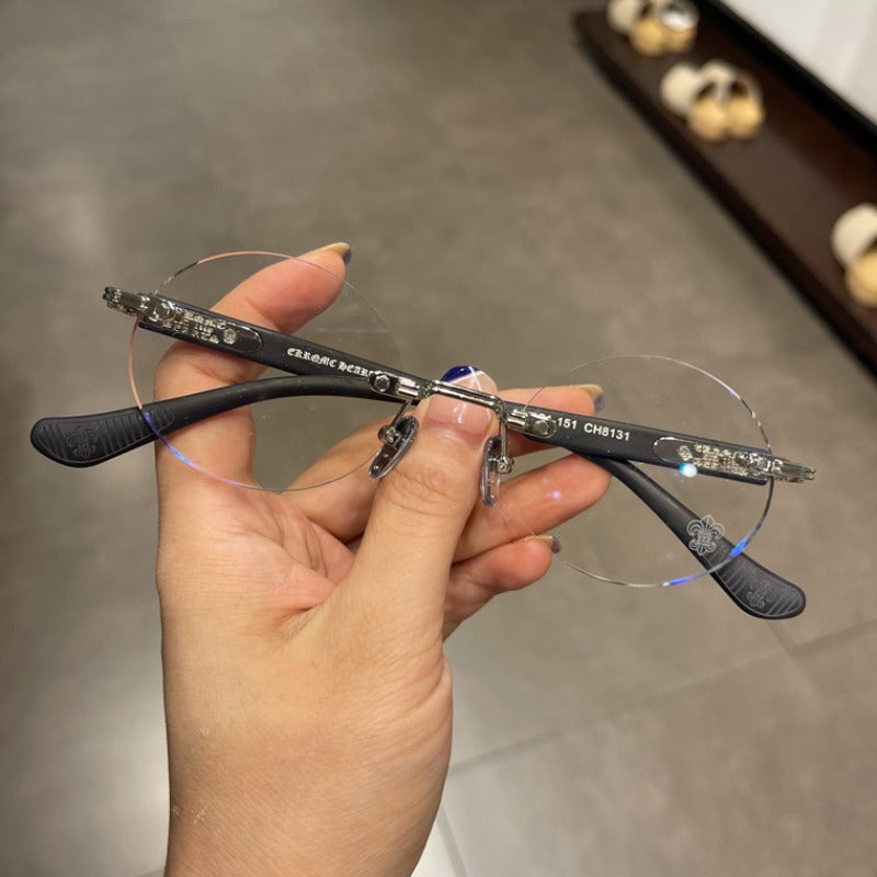 CHH Chrome Hearts Glasses Frame Frameless Round Perforated Myopia Glasses Frame Vintage