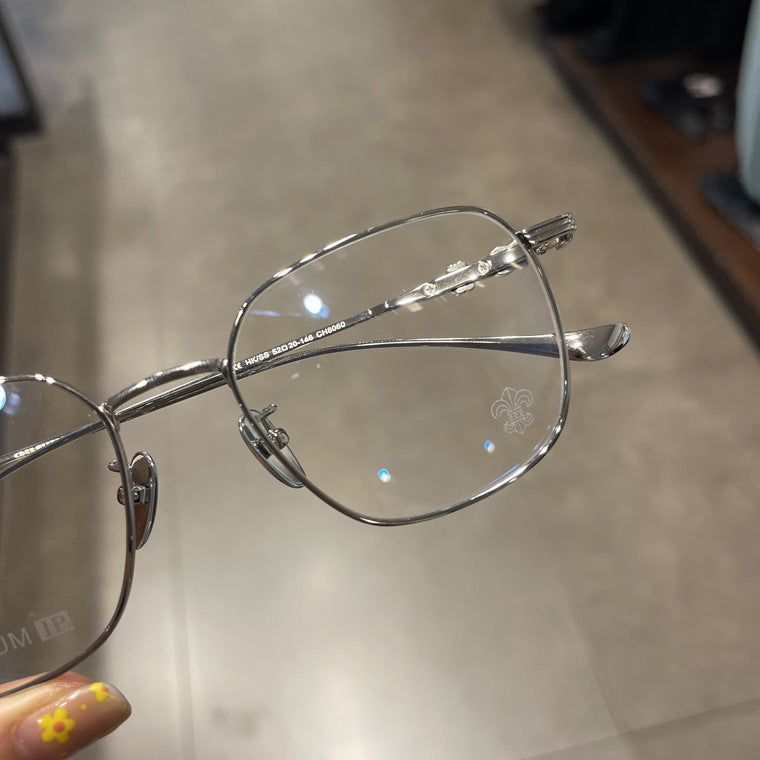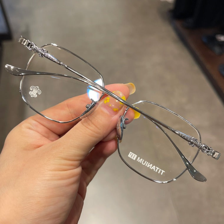 CHH Chrome Hearts Glasses Pure Titanium Ultra-light Square Gold Silk Edge Big Face Myopia Glasses Frame